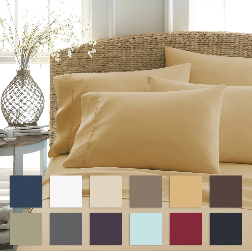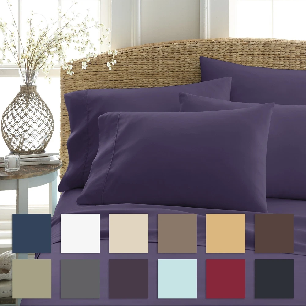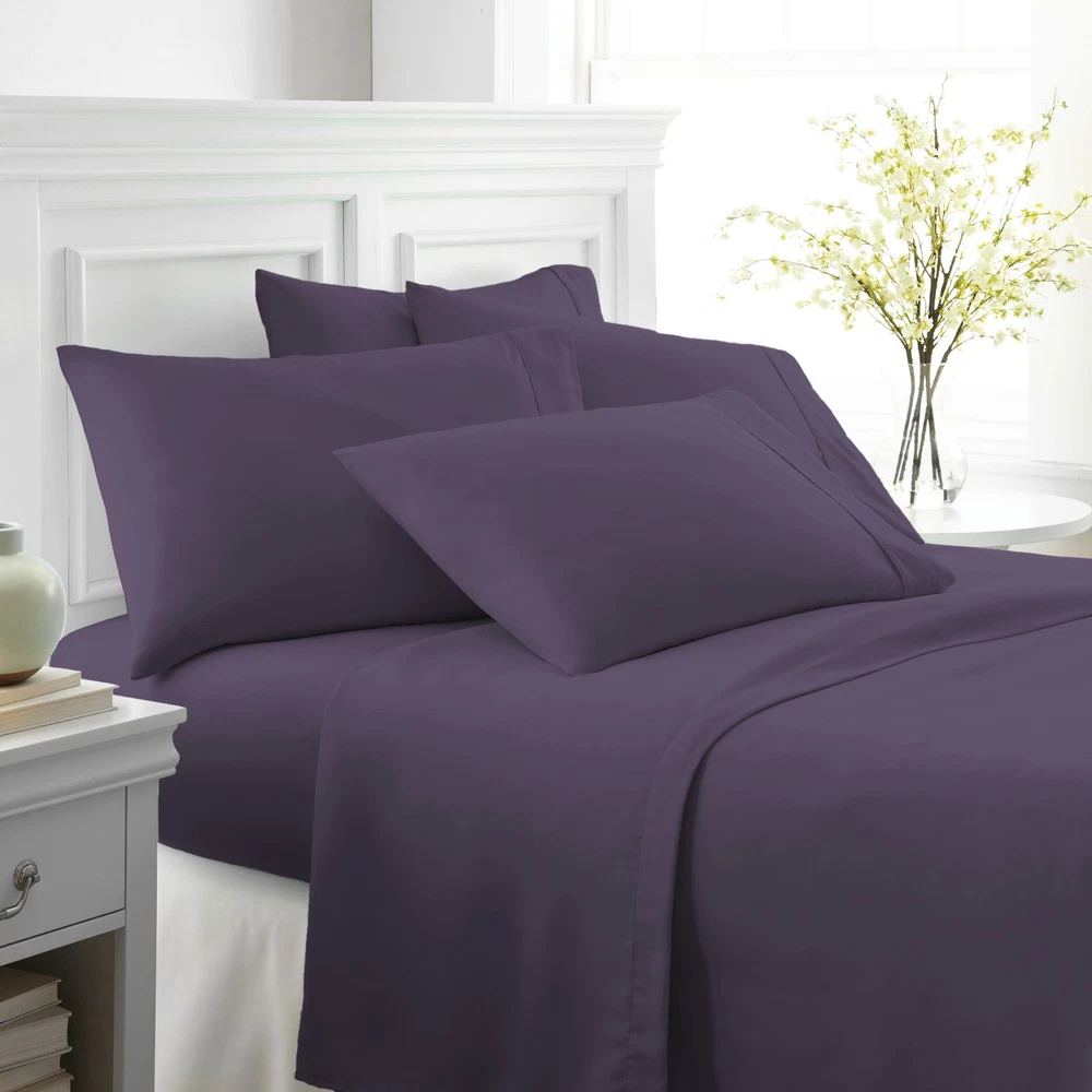 View more great items Ultra Soft 6 Piece Bed Sheet Set by The Home Collection The Home Collection 6-Piece sheet set is designed with your comfort in mind. Made of the finest imported double-brushed microfiber yarns creating a new standard in softness and breathability, this 6-piece sheet set will make it incredibly hard to get out of bed in the morning. Our premium yarns are two times more durable than cotton, completely wrinkle free, and perfect for all seasons. FEATURES: · 6-piece set with 2 additional pillowcases includes 1 Flat Sheet, 1 Fitted Sheet, and 4 Pillowcases (Twin and Twin Extra Long sets come with 2 Pillowcases) · Double-brushed microfiber for outstanding comfort · 16" deep pocket fitted sheets - perfect for oversized mattresses · Easy Care: Machine wash cold, Tumble dry low, Fade Resistant, Wrinkle Free, No Ironing Necessary · Superior weave for durability and a buttery-soft touch · Made of ultra-soft and breathable 90 GSM microfiber · Hypoallergenic and Antimicrobial for allergy sufferers and sensitive skin · Sizes: Twin, Twin XL, Full, Queen, King, and California King · Available in a variety of 12 beautiful colors: White, Cream, Taupe, Gold, Gray, Navy, Sage, Chocolate, Purple, Aqua, Burgundy, and Black SIZE GUIDE: Twin Size Set Includes: 1 Twin Fitted Sheet: 39" W x 75" L +16" 1 Twin Flat Sheet: 66" W x 96" L 2 Standard Pillowcases: 20" W x 30" L Twin Extra Long Size Set Includes: 1 Twin Extra Long Fitted Sheet: 39" W x 81” L +16" 1 Twin Extra Long Flat Sheet: 66" W x 96" L 2 Standard Pillowcases: 20" W x 30" L Full Size Set Includes: 1 Full Fitted Sheet: 54" W x 75" L + 16" 1 Full Flat Sheet: 81" W x 96" L 4 Standard Pillowcases: 20" W x 30" L Queen Size Set Includes: 1 Queen Fitted Sheet: 60" W x 80" L + 16" 1 Queen Flat Sheet: 90" W x 102" L 4 Standard Pillowcases: 20" W x 30" L King Size Set Includes: 1 King Fitted Sheet: 78" W x 80" L + 16" 1 King Flat Sheet: 102" W x 105" L 4 King Pillowcases: 20" W x 40" L California King Size Set Includes: 1 California King Fitted Sheet: 72" W x 84" L + 16" 1 California King Flat Sheet: 108" W x 102" L 4 King Pillowcases: 20" W x 40" L Frequently Asked Questions Return Policy Q: What Is Your Return Policy? A: iEnjoy Home offers a 30-day money-back guarantee on all items. Free return shipping. If you need to return an item for a refund, please contact us within the return period. Q: What Are The Warranty Details? A: All ienjoy Home sales include our 30-day money-back guarantee. Items may have additional warranty coverage. To determine if your purchase is covered by our manufacturer warranty, please contact us for further assistance. Payment Q: Are Your Prices Negotiable? A: Our prices are already heavily discounted and are therefore not subject to negotiation. Shipping Q: How Much Does Shipping Cost? A: Standard shipping is FREE on all items shipped within the United States. For express and international shipping, please contact us for further assistance. (Unfortunately we do not ship to Alaska or Hawaii) Q: When Will My Order Ship? A: All orders ship within 1 business day. Please keep in mind, if placed over the weekend your order will ship out the following business day. When your order ships, you will be emailed tracking information. Q: Do You Ship Internationally? A: Yes, international shipping is handled by eBay's Global Shipping program. For more information please contact eBay directly.