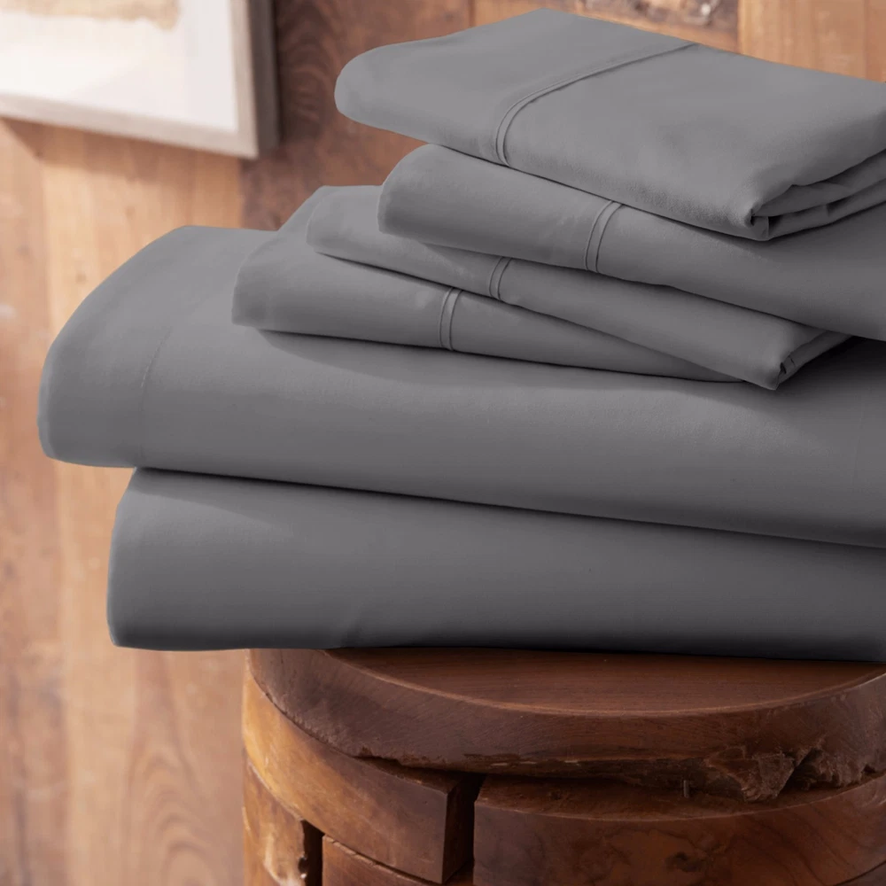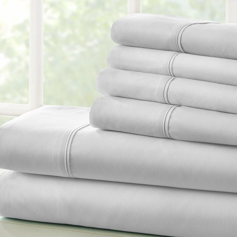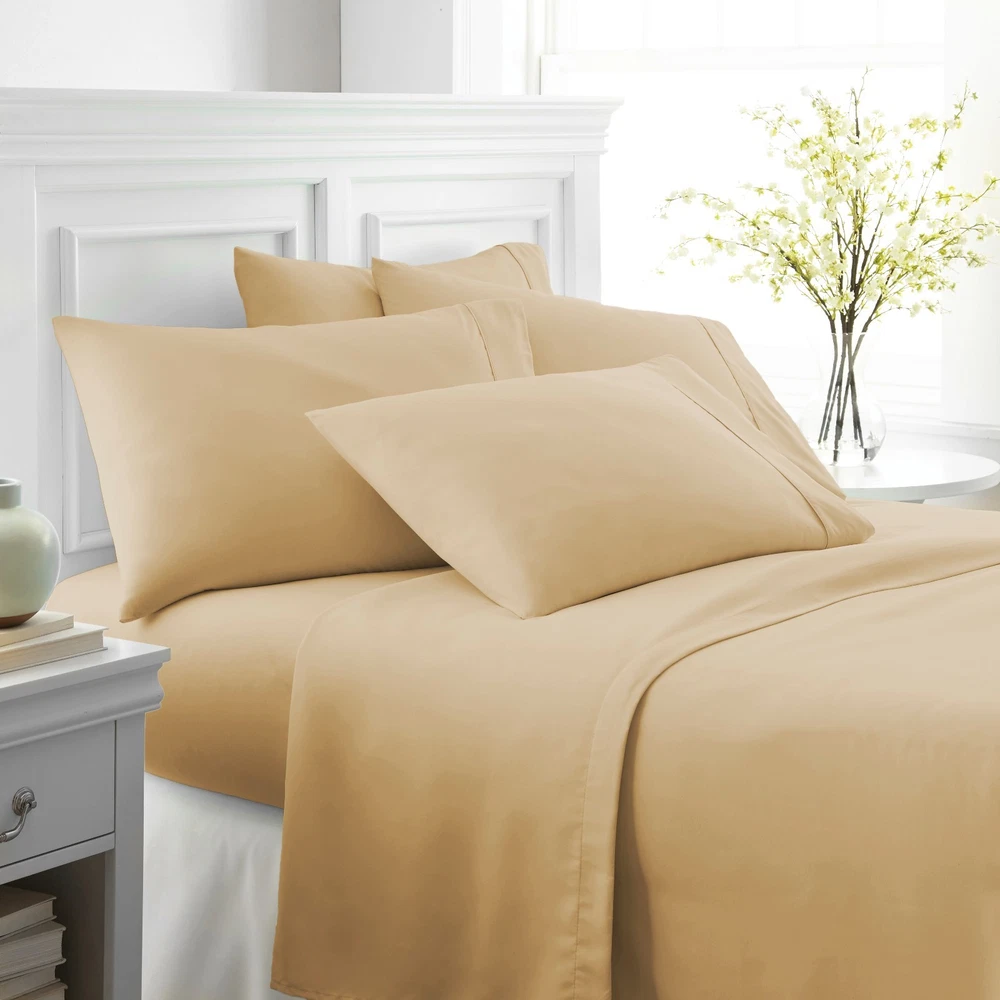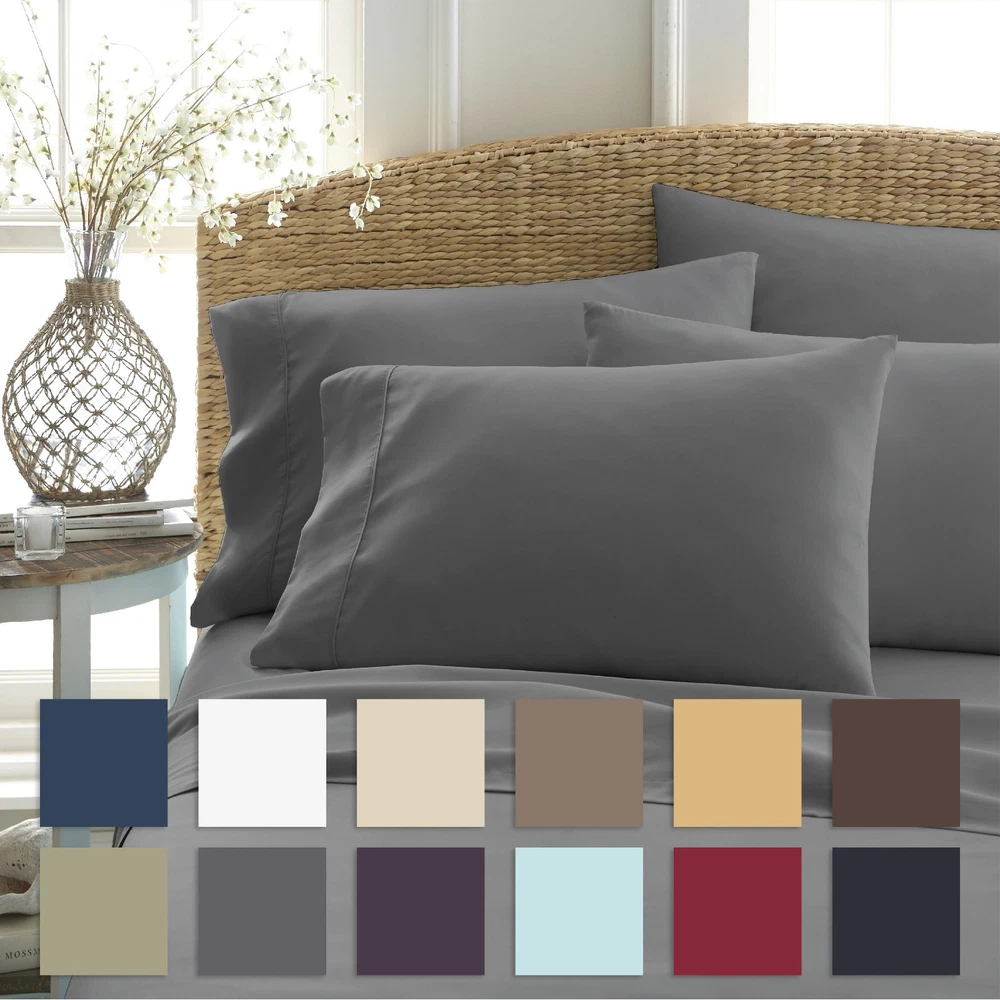 View more great items Ultra Soft 6 Piece Bed Sheet Set by The Home Collection The Home Collection 6-Piece sheet set is designed with your comfort in mind. Made of the finest imported double-brushed microfiber yarns creating a new standard in softness and breathability, this 6-piece sheet set will make it incredibly hard to get out of bed in the morning. Our premium yarns are two times more durable than cotton, completely wrinkle free, and perfect for all seasons. FEATURES: · 6-piece set with 2 additional pillowcases includes 1 Flat Sheet, 1 Fitted Sheet, and 4 Pillowcases (Twin and Twin Extra Long sets come with 2 Pillowcases) · Double-brushed microfiber for outstanding comfort · 16" deep pocket fitted sheets - perfect for oversized mattresses · Easy Care: Machine wash cold, Tumble dry low, Fade Resistant, Wrinkle Free, No Ironing Necessary · Superior weave for durability and a buttery-soft touch · Made of ultra-soft and breathable 90 GSM microfiber · Hypoallergenic and Antimicrobial for allergy sufferers and sensitive skin · Sizes: Twin, Twin XL, Full, Queen, King, and California King · Available in a variety of 12 beautiful colors: White, Cream, Taupe, Gold, Gray, Navy, Sage, Chocolate, Purple, Aqua, Burgundy, and Black SIZE GUIDE: Twin Size Set Includes: 1 Twin Fitted Sheet: 39" W x 75" L +16" 1 Twin Flat Sheet: 66" W x 96" L 2 Standard Pillowcases: 20" W x 30" L Twin Extra Long Size Set Includes: 1 Twin Extra Long Fitted Sheet: 39" W x 81” L +16" 1 Twin Extra Long Flat Sheet: 66" W x 96" L 2 Standard Pillowcases: 20" W x 30" L Full Size Set Includes: 1 Full Fitted Sheet: 54" W x 75" L + 16" 1 Full Flat Sheet: 81" W x 96" L 4 Standard Pillowcases: 20" W x 30" L Queen Size Set Includes: 1 Queen Fitted Sheet: 60" W x 80" L + 16" 1 Queen Flat Sheet: 90" W x 102" L 4 Standard Pillowcases: 20" W x 30" L King Size Set Includes: 1 King Fitted Sheet: 78" W x 80" L + 16" 1 King Flat Sheet: 102" W x 105" L 4 King Pillowcases: 20" W x 40" L California King Size Set Includes: 1 California King Fitted Sheet: 72" W x 84" L + 16" 1 California King Flat Sheet: 108" W x 102" L 4 King Pillowcases: 20" W x 40" L Frequently Asked Questions Return Policy Q: What Is Your Return Policy? A: iEnjoy Home offers a 30-day money-back guarantee on all items. Free return shipping. If you need to return an item for a refund, please contact us within the return period. Q: What Are The Warranty Details? A: All ienjoy Home sales include our 30-day money-back guarantee. Items may have additional warranty coverage. To determine if your purchase is covered by our manufacturer warranty, please contact us for further assistance. Payment Q: Are Your Prices Negotiable? A: Our prices are already heavily discounted and are therefore not subject to negotiation. Shipping Q: How Much Does Shipping Cost? A: Standard shipping is FREE on all items shipped within the United States. For express and international shipping, please contact us for further assistance. (Unfortunately we do not ship to Alaska or Hawaii) Q: When Will My Order Ship? A: All orders ship within 1 business day. Please keep in mind, if placed over the weekend your order will ship out the following business day. When your order ships, you will be emailed tracking information. Q: Do You Ship Internationally? A: Yes, international shipping is handled by eBay's Global Shipping program. For more information please contact eBay directly.
