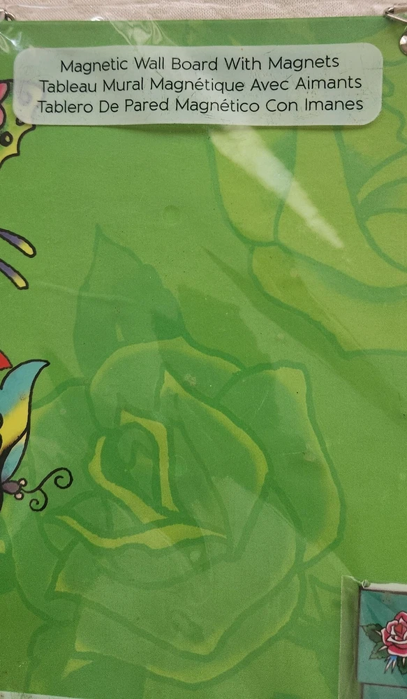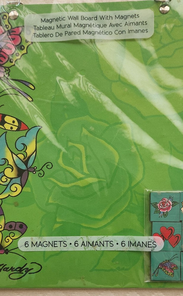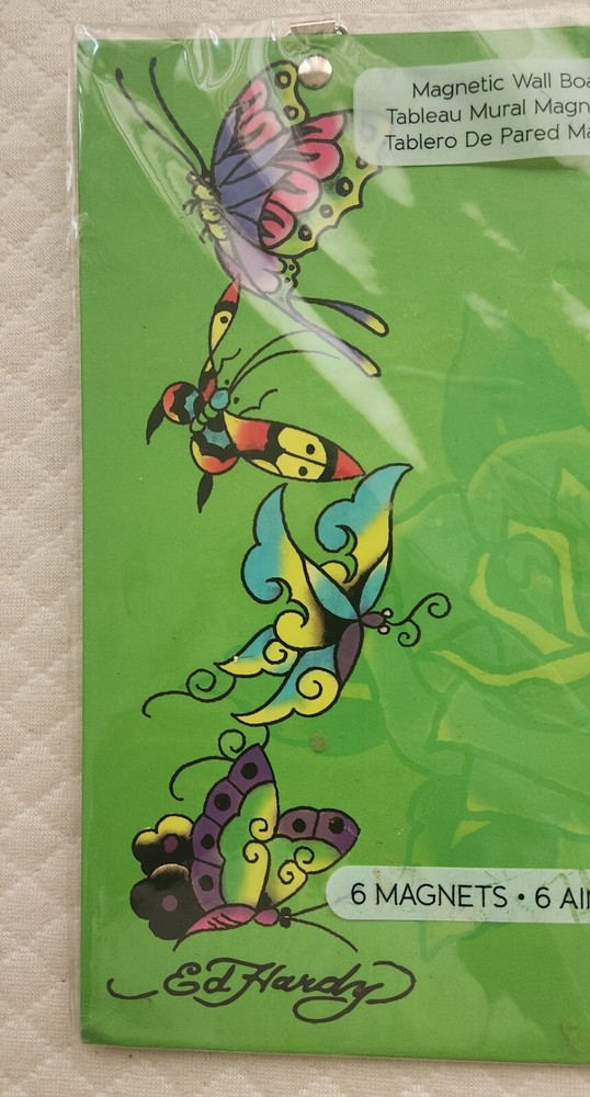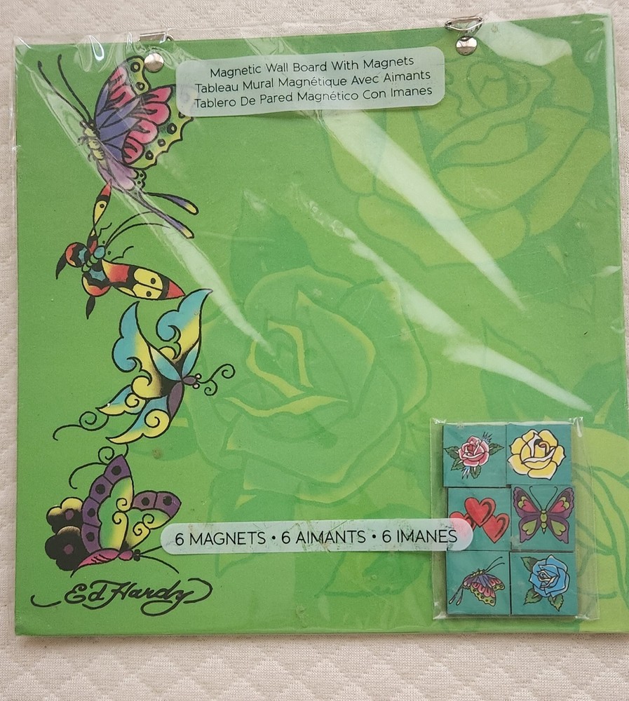 New, sealed 2012 Studio 18 Ed Hardy Magnetic board with 6 magnets. Bright green with butterflies. Great for kitchens, dorms, anywhere!! 10"x10"...