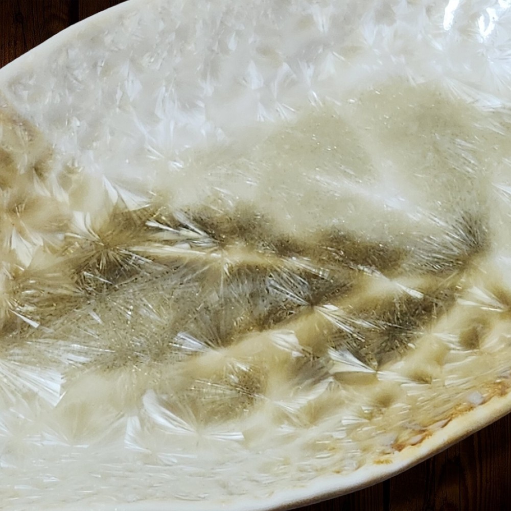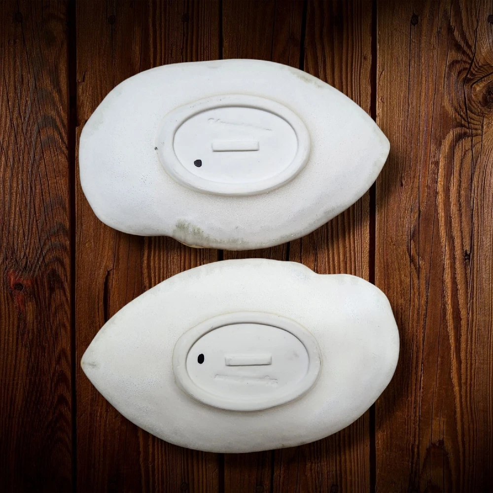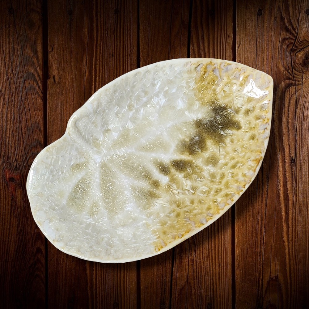 Edgecomb Potters Maine Studio Pottery Pair of Leaf Dishes Crystalline Glaze. Beautiful, unique Glaze technique. Price is for 2 dishes. Each dish is 10" long x 6" wide.