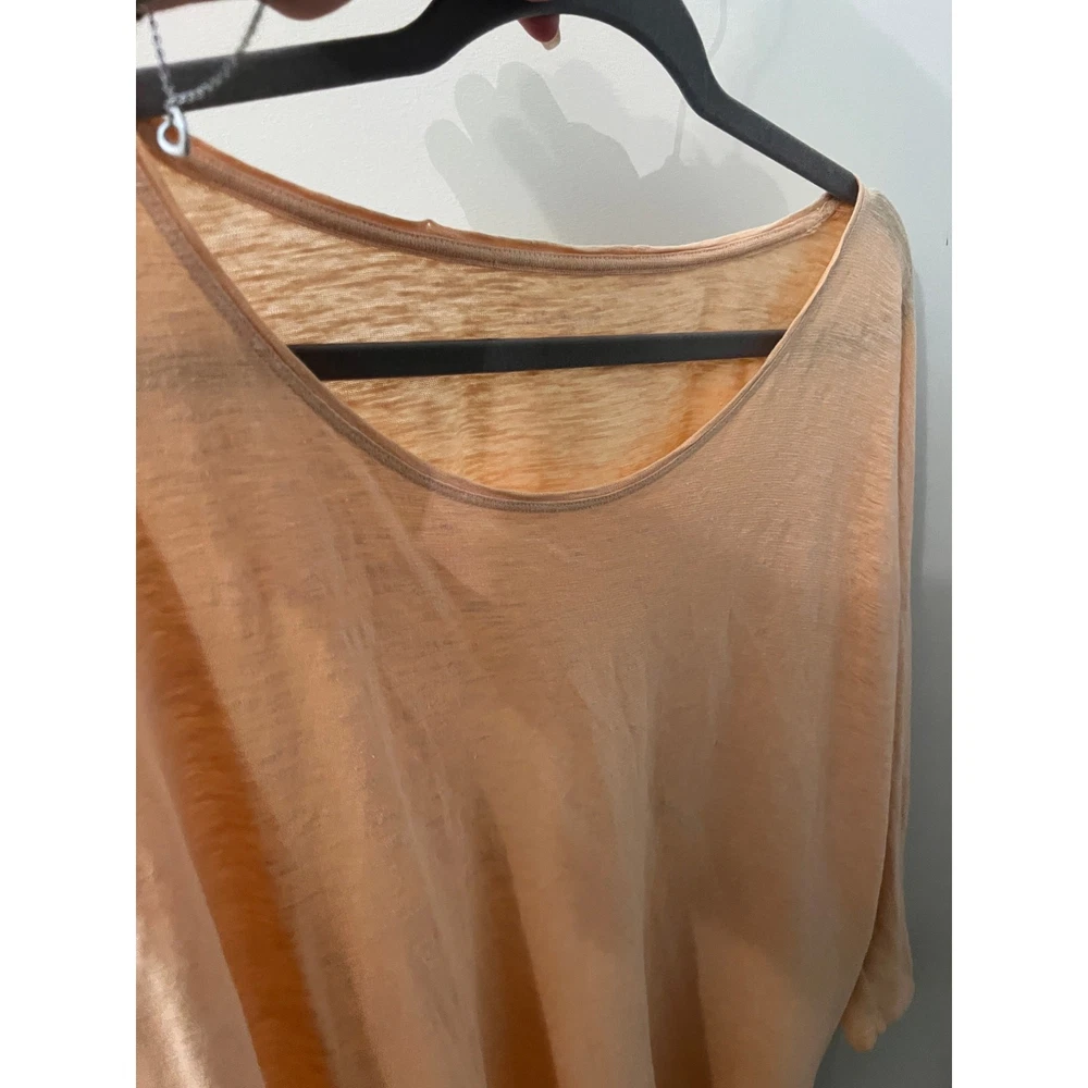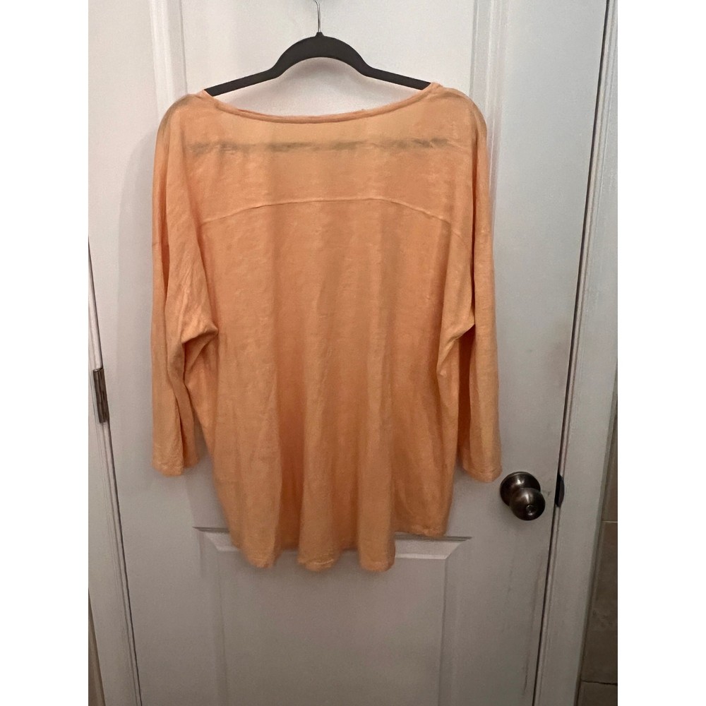 <![CDATA[<div>Eileen Fisher Organic Cotton Hemp Twist NECTAR Dip Hem L Top 3/4 Sleeve Career Size: Large Color: Nectar - Light Orange Fabric: 55% Hemp 45% Organic Cotton Scoop neck Flared shape High Low hem Dipped hem 3/4 sleeves Machine wash cold Armpit to Armpit-26” Front Length collar to bottom hem -24” Back Length: 27" “Great Pre owned condition (see pictures for details)” Casual, Old Money, Hemp, Organic Cotton, breathable , comfort, Boho, Beachy, Coastal Grandma, Summer, Minimalistic, Pullover, Bright Color, Classic, Oversized,