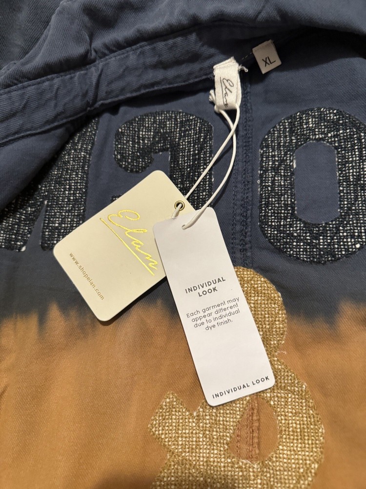 This Elan Delilah jacket in navy camel dip dyed is a must-have for any fashion-forward woman. With its stylish and trendy design, this jacket is perfect for any occasion. The jacket is made from high-quality cotton material that will keep you comfortable and warm. It comes in size XL and has a regular fit that will flatter your figure. The blue color adds a touch of elegance to your outfit, while the basic jacket style is perfect for both casual and formal wear. The Elan Delilah jacket is brand new with tags and has never been worn before. It is a high-quality jacket that is perfect for any season. Whether you are going out for a casual lunch or a formal event, this jacket will make you look and feel amazing.