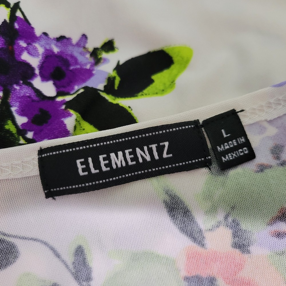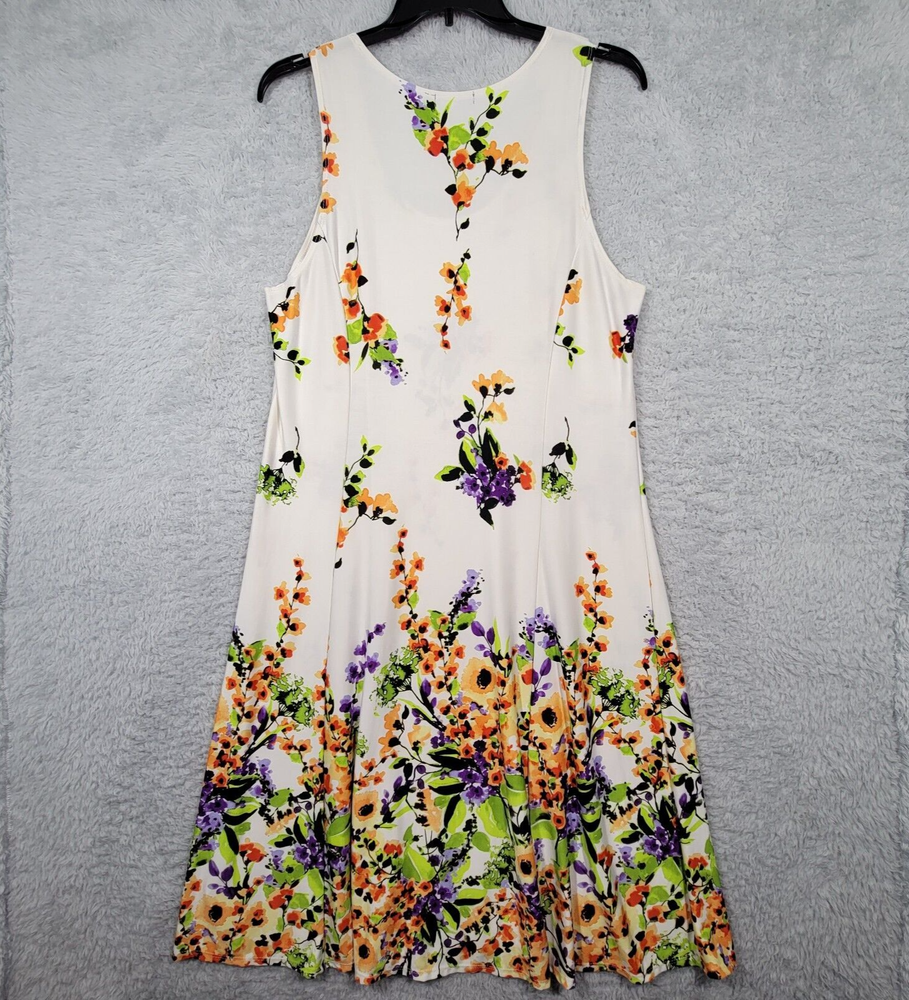 Elementz Dress Womens Large Floral Dipped Stretch Unlined Sleeveless - Please see pictures for condition and measurements for fit. - Please compare measurements to one of your own to insure fit. - Clothing has been properly cleaned per eBay policy. - Super Fast Shipping - I ship out the next business day with a tracking number for confirmation! - I am happy to answer your questions!