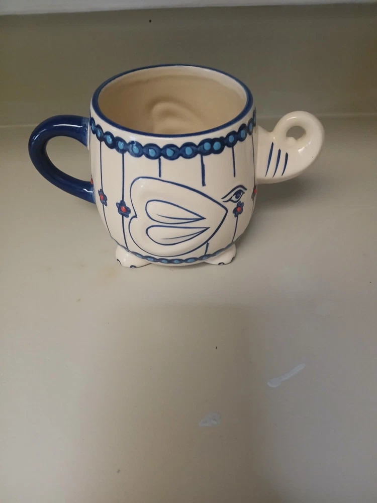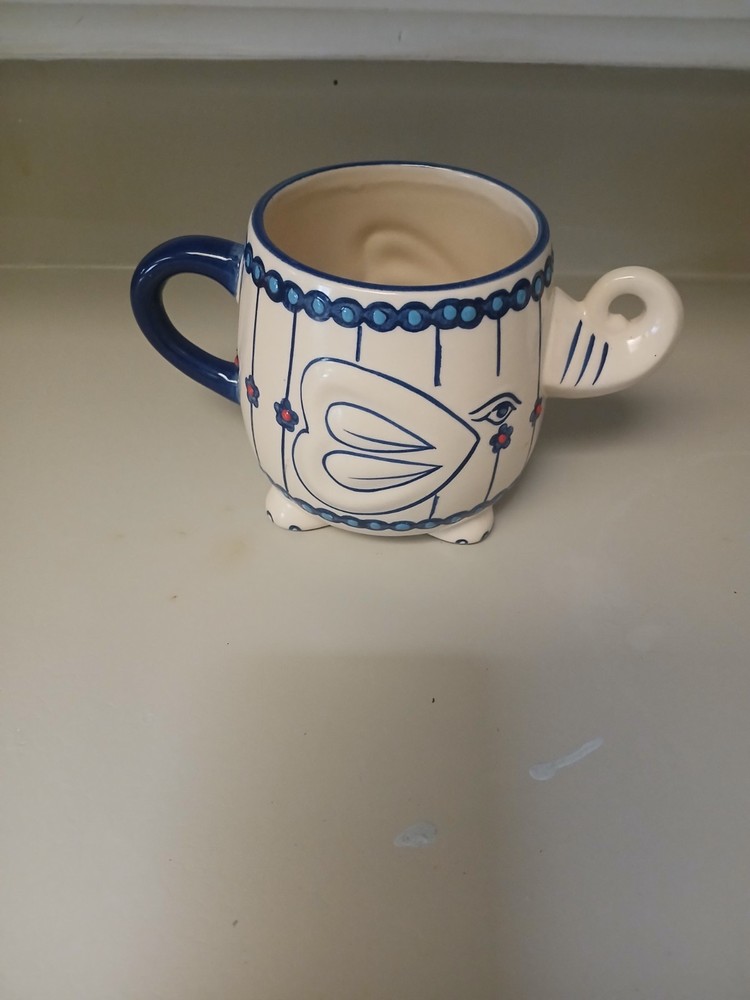 Sip your favorite beverages in style with this charming elephant-shaped porcelain mug from Yokohama Studio. Perfect for any occasion, whether you're enjoying a hot cup of coffee on a chilly morning or unwinding with a cold tea in the evening, this mug caters to your diverse drinking needs. Adorned with a hand-painted design, this mug features a delightful animal theme that is sure to appeal to any lover of nature and wildlife. The unisex design makes it a versatile addition to any kitchen, while the single-serving capacity ensures a personal touch to your beverage experience. Enjoy your drinks with the elegance of this unique, original piece.