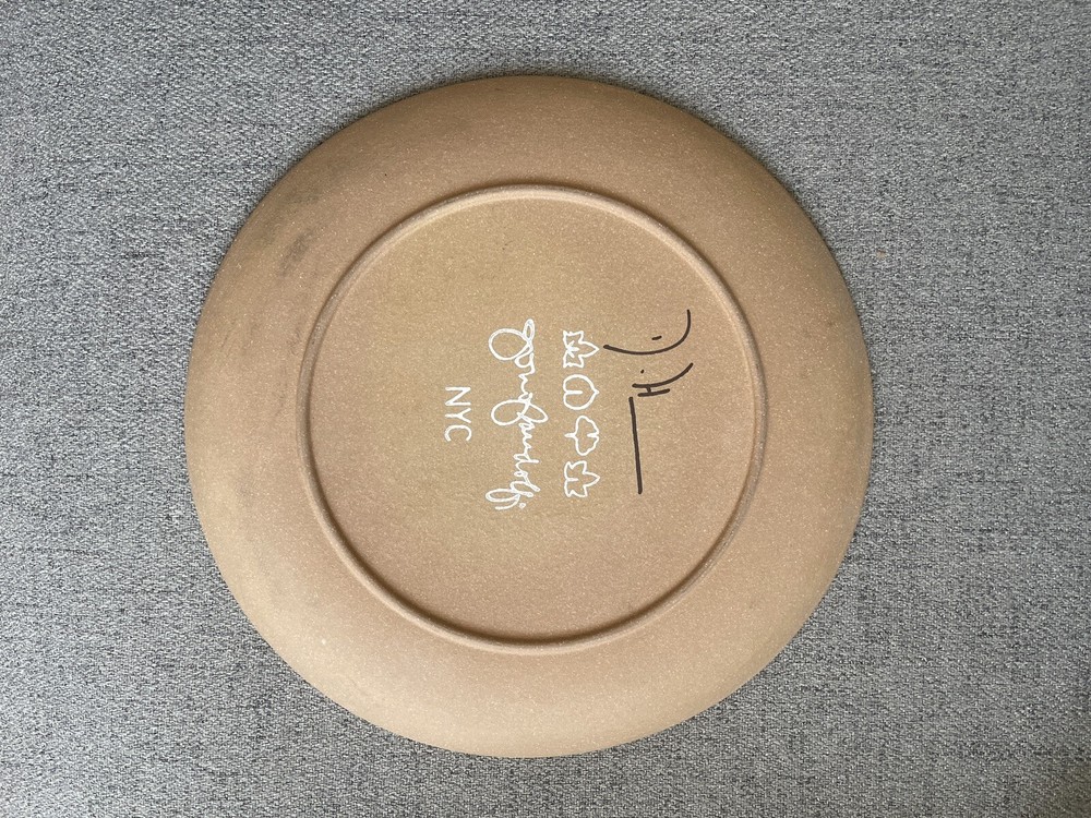 This white plate is one of the original dinner plates used at Eleven Madison Park before it was renovated in 2017. The plate is signed by both Will and Daniel who were co-owners at this time. Rare in mint condition and comes with a hanger if you wish to display on a wall