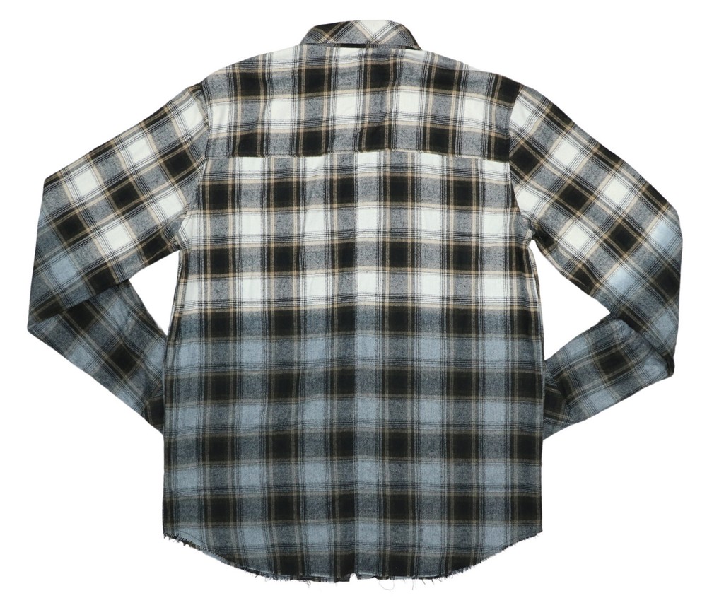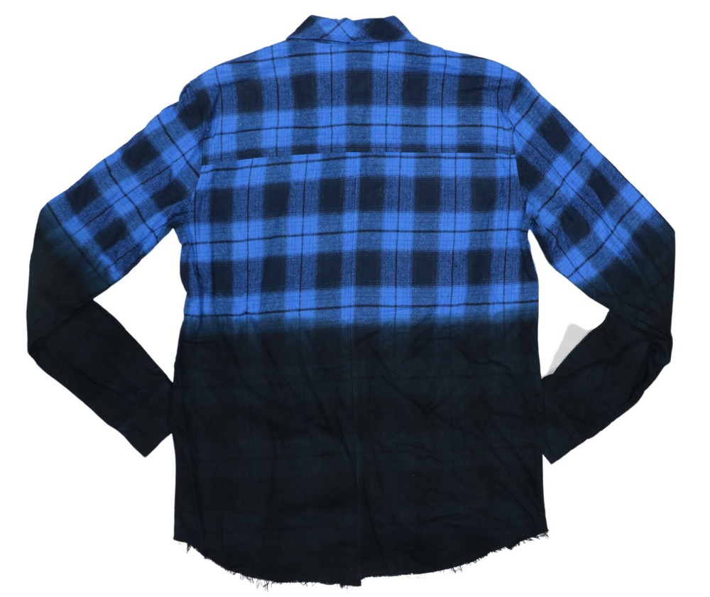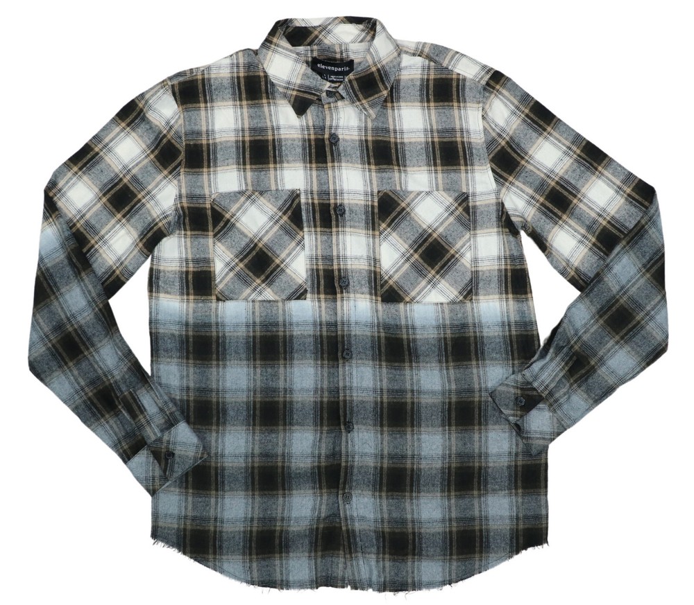 Eleven Paris Men's Shirt Size: Your Choice of Available Sizes Armpit to Armpit: M/21.5" - L/22.5" - XL/23.5" Base of Collar to Hem Back Middle: M/30" - L/30.5" - XL/31" Color: Your Choice of Available Colors Material: 100% Cotton MSRP: $125.00 Raw Edge Fringe Hem Dip-Dyed Two-Tone Color Plaid Design Pattern Dual Chest Pockets Ultra Soft Flannel Fabrics Full Length Button Down Front Long Sleeves Great for Parties, Bars/Clubs, Back to School, the Office and More Ships Free Anywhere in the USA Designer Brand Name Fashion Brand New With Tags Office Inventory Use: A019