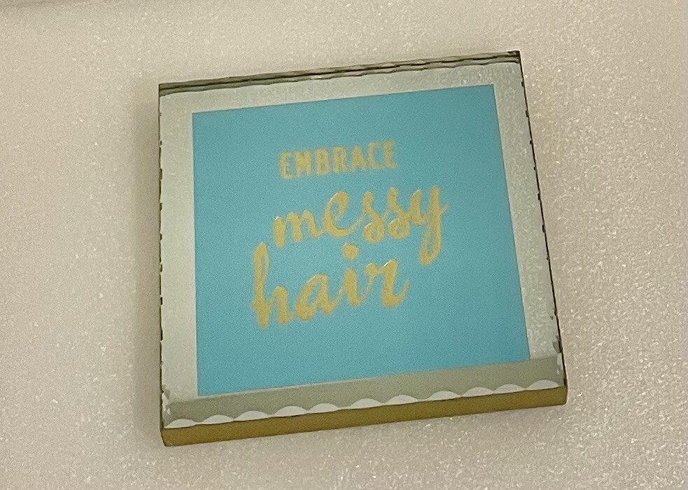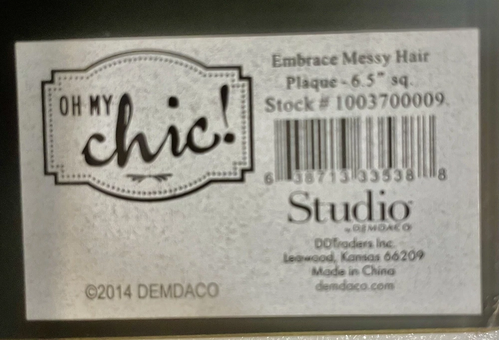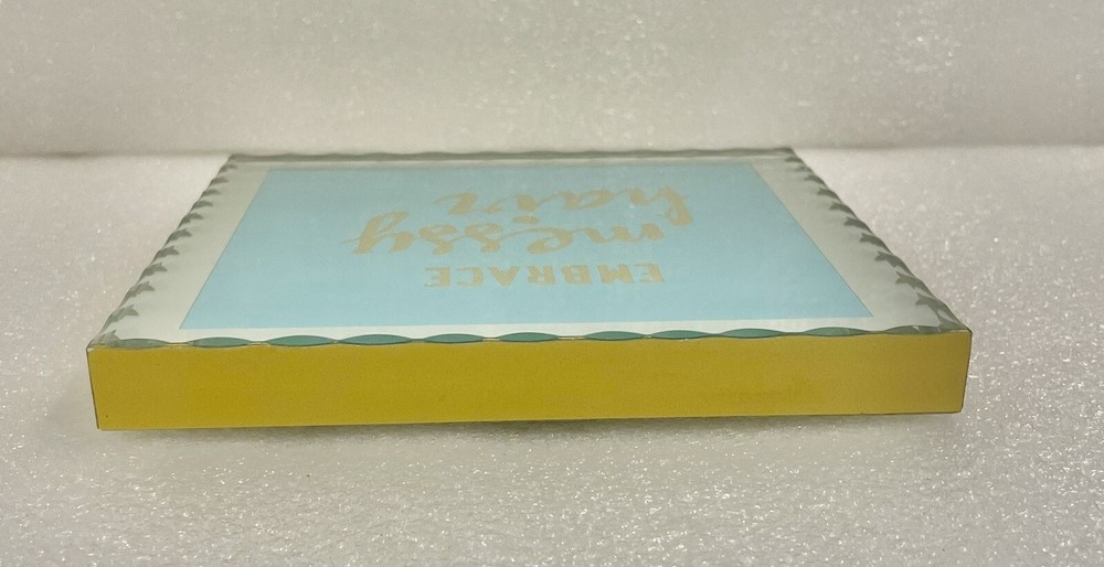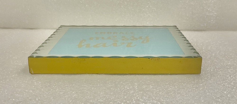 Pre-owned good condition. Pictures are the description. Look at photos one corner has a ding not noticeable when hanging or sitting in easel. A little of backing has peeled but not noticeable on the front Add a touch of glam to any room with this Embrace Messy Hair Inspirational Blue Wall Plaque from DEMDACO. The small, square plaque features a stylish pattern of letters in blue color, crafted from composite wood and glass materials. The plaque is easy to care for and can be easily cleaned, making it a perfect addition to any home decor. This wall-mounted plaque has a horizontal orientation and comes with a sawtooth hanger, decorative beveled edge, and mirror features. It is ideal for any room, including the entryway, foyer, kitchen, bedroom, living room, lounge, den, guestroom, nursery, and dining room. The plaque is not handmade and weighs 2lb, measuring 6.5 inches in height and width.