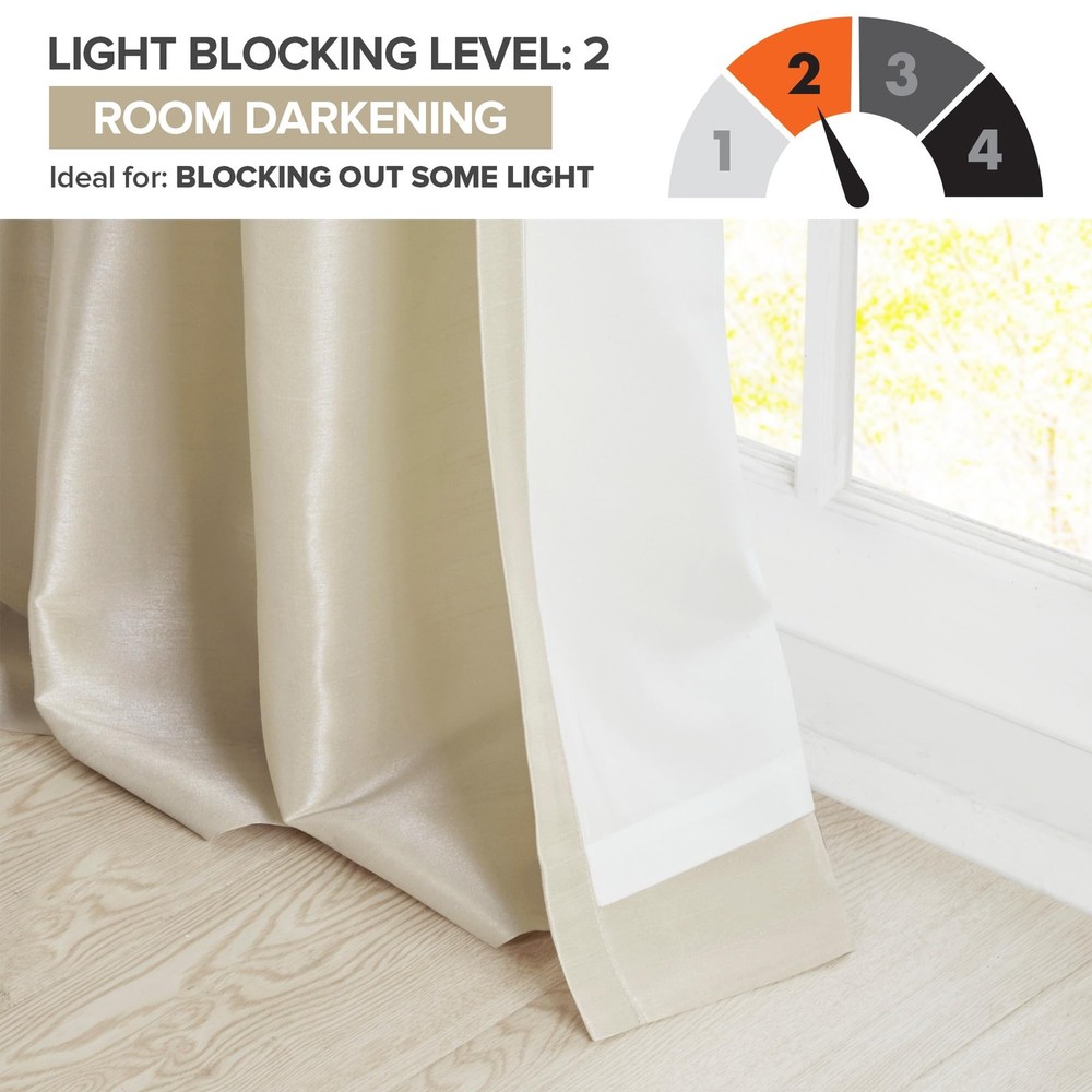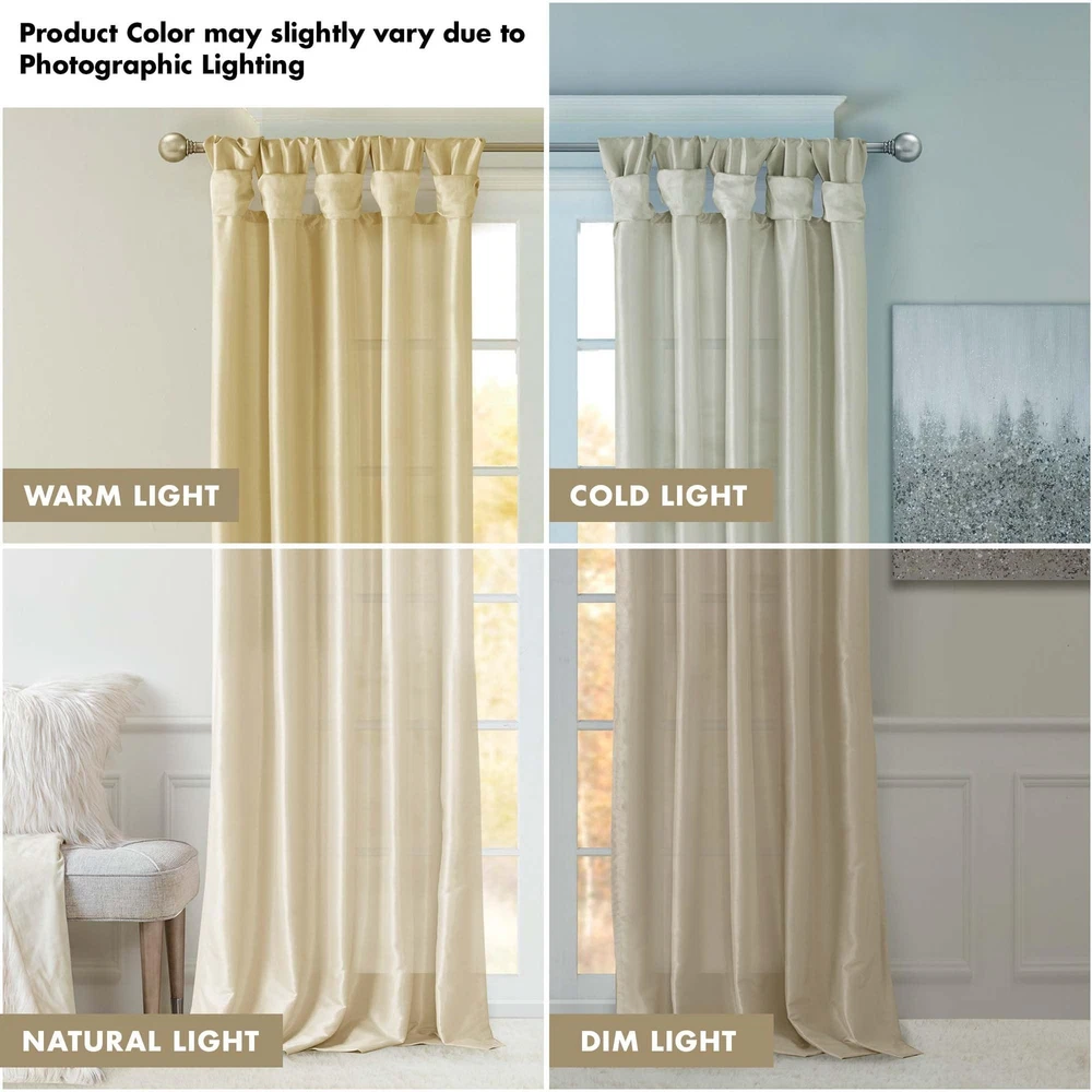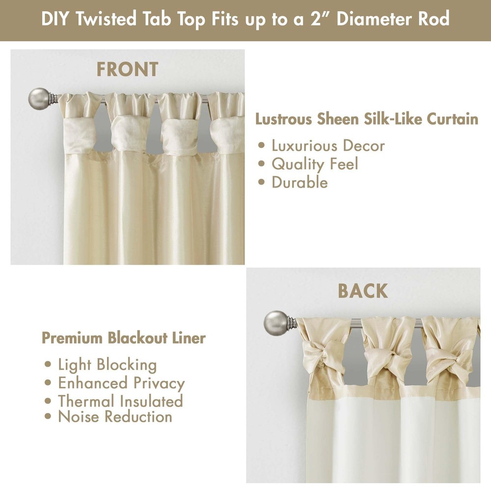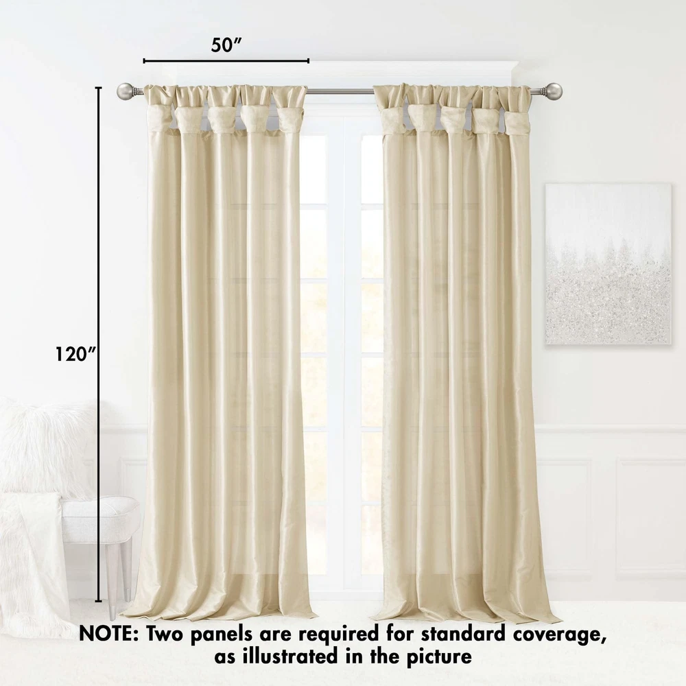NEW & TRENDY - Give your home a decorator’s touch with the Emilia Window Curtain. Made from a faux silk fabric, this elegant window curtain features a DIY twist tab top. the luxurious sheen and rich navy tone provides a touch of sophistication to your decor. Easy to hang, this twist tab top curtain turns any room into a gorgeous getaway. PRIVACY – These living room curtains feature a back lining for enhanced privacy and improved drapability. The lining also boosts their ability to dim incoming light, creating a cozy room-darkening effect for a more inviting ambiance TWISTED TAB - This elegant bedroom window curtain features a DIY twist tab top finish that not only creates rich, deep folds for a professional look, but also makes this panel easy to hang, open and close MEASUREMENT - 1 Window Panel: 50"W x 120"L. Fits up to a 2" rod. As shown in the image - For standard coverage, purchase 2 panels. Some light may enter between the tabs due to the design. Install the rod 9” higher for better coverage CARE - Machine wash cold on gentle cycle, tumble dry on low heat, wash alone, do not bleach