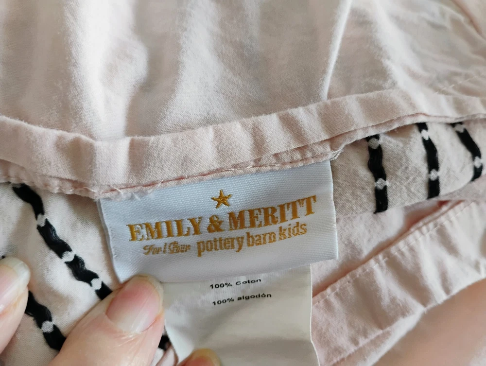 Emily & Meritt Pottery Barn Kids Duvet Cover & Pillow Sham Set Size - Full/Queen, Standard Pillow Sham Color - Blush and Black Button closure on duvet cover See pics for details...
