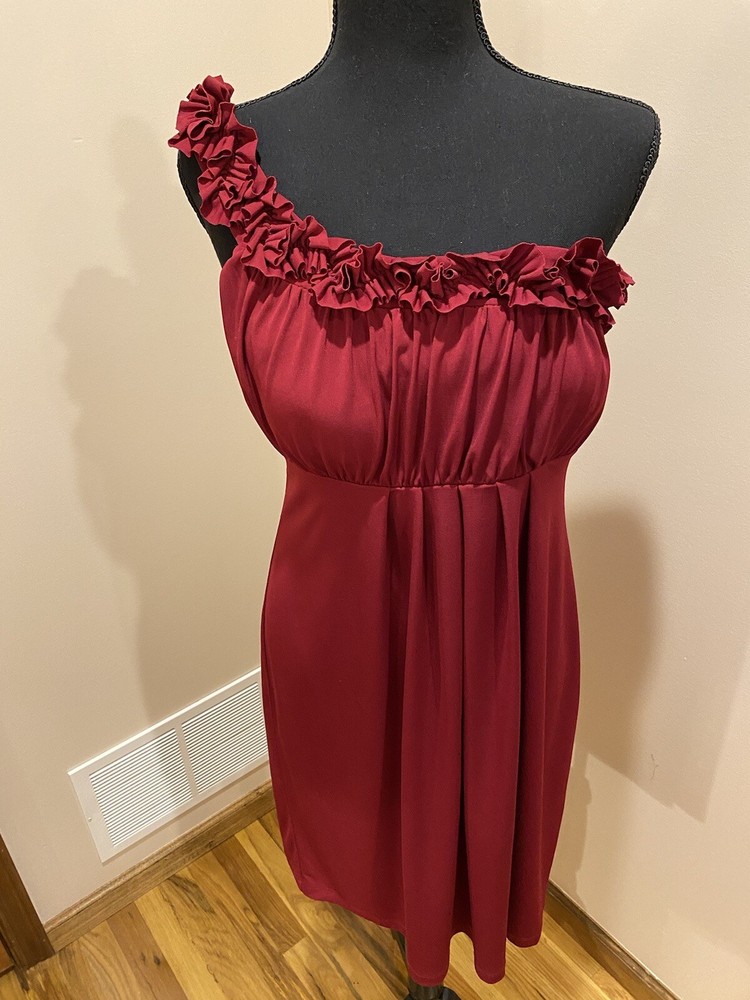 Elevate your style with this stunning En Focus Studio dress in maroon, perfect for any formal occasion. Featuring a sweetheart neckline and a wide strap, this dress also boasts a trendy one-shoulder sleeve type and a pullover closure. The blouson style and solid pattern create a classic and elegant look, while the long dress length adds a touch of sophistication. Made of polyester and spandex, this dress is machine washable for easy care. The dress is perfect for winter, summer, fall, or spring, making it a versatile addition to any wardrobe. Ideal for weddings, holy communions, parties, and cocktails, this dress will make you stand out in any crowd.