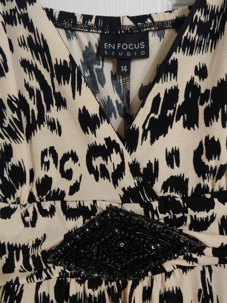 Enfocus Studio Beige Black Empire Waist Stretch Dress Size 14. New without tags. Please see pictures. Please message any questions....