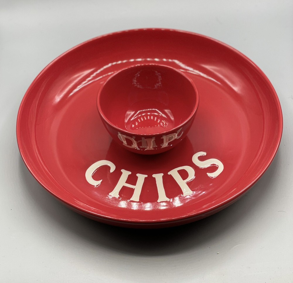 Espana Lifestyle 2 Piece Chip And Dip Serving Bowl Set Red White 13" & 5" Bowl. Only opened to show contents. You will receive exact items pictured. I removed from box to show it is PERFECT! Each piece is double boxed. On hand and ready to ship! Perfect for your next party! New in box. Thanks for shopping!