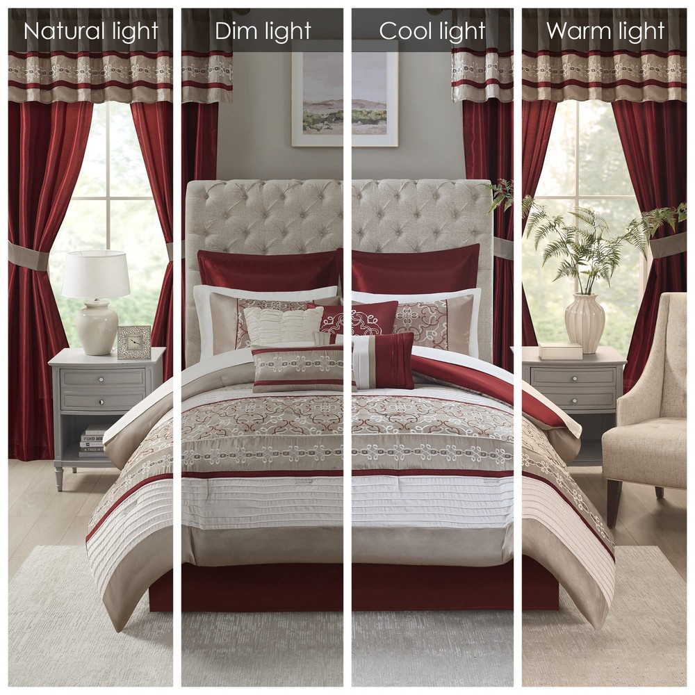 Love how this set transforms my bedroom effortlessly! The faux silk comforter feels luxurious, and the bold red and white design adds elegance. The embroidered details and coordinating shams, pillows, and curtains give the room a polished, high-end look—all without breaking the bank. Perfect for an instant refresh!