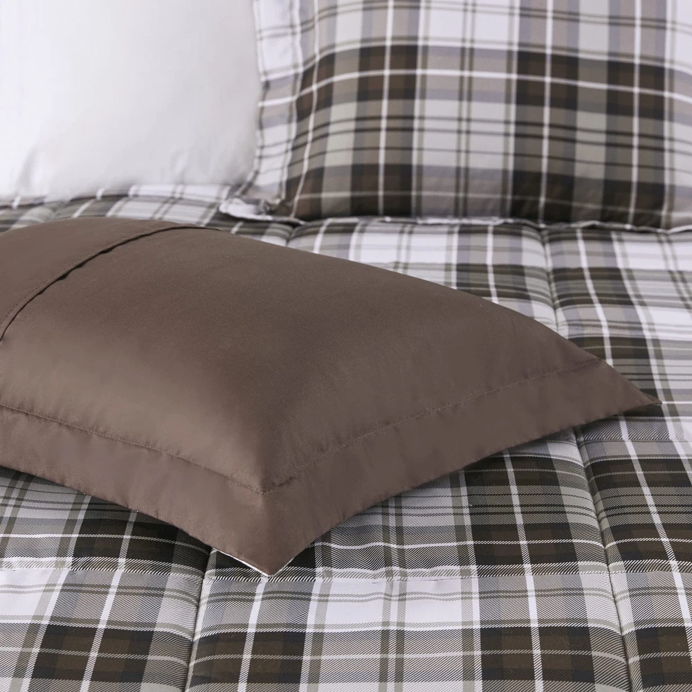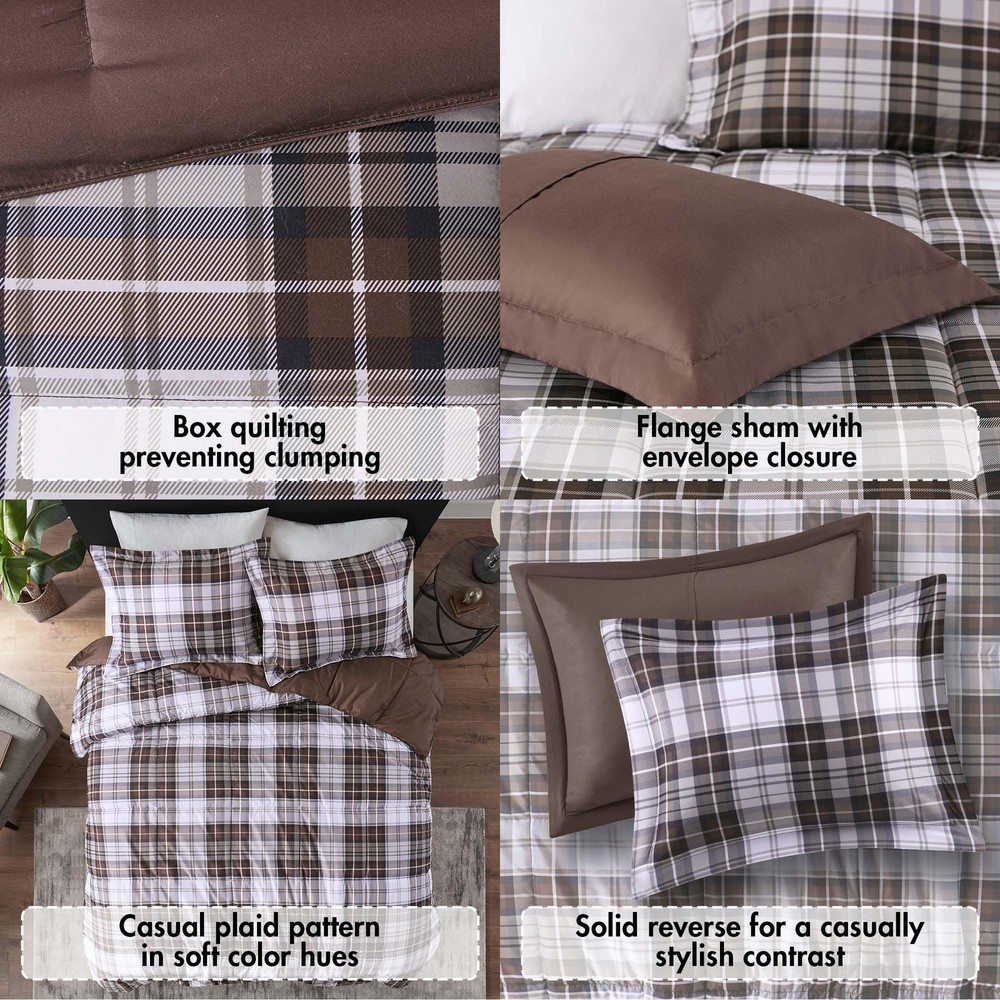 NEW & TRENDY - Search no further for your new comforter, Parkston comforter set with matching sham offers a popular style of modern cabin lifestyle of plaid design. 3M Scotchgard moisture management treatment to help wick away moisture, keeping you dry and comfortable at all times. The matching sham completes the look. Add a casual country charm to your bedroom and wake up to a new advanture every day BETTER SLEEP - We simply offer you a really soft high cover and our moisture wicking technology will help to keep you dry and stay comfortable. Our cozy comforter set will naturally help you sleep by making you feel toasty warm at night ALL SEASON - This is all the bedding comfort you need. With the right amount of down alternative fill and brushed microfiber cover, our comforter will stay dry while keeping you warm and comfortable year round Set includes: 1 Comforter: 102"W x 90"L, 2 King Shams: 20"W x 36"L Care instructions: Machine wash cold, gentle cycle, and separately. Do not bleach. tumble dry low, remove promptly. Do not iron. If there is no free movement in the washer or dryer, use large capacity commercial washer/dryer.