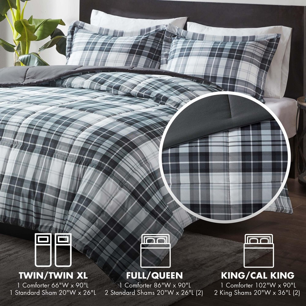 NEW & TRENDY - Search no further for your new comforter, Parkston comforter set with matching sham offers a popular style of modern cabin lifestyle of plaid design. 3M Scotchgard moisture management treatment to help wick away moisture, keeping you dry and comfortable at all times. The matching sham completes the look. Add a casual country charm to your bedroom and wake up to a new advanture every day BETTER SLEEP - We simply offer you a really soft high cover and our moisture wicking technology will help to keep you dry and stay comfortable. Our cozy comforter set will naturally help you sleep by making you feel toasty warm at night ALL SEASON - This is all the bedding comfort you need. With the right amount of down alternative fill and brushed microfiber cover, our comforter will stay dry while keeping you warm and comfortable year round HOW BIG? - This set is for Twin/TwinXL size bed; Comforter Set: 66"W x 90"L, Matching Standard Sham: 20"W x 26"L Care instructions: Machine wash cold, gentle cycle, and separately. Do not bleach. tumble dry low, remove promptly. Do not iron. If there is no free movement in the washer or dryer, use large capacity commercial washer/dryer.
