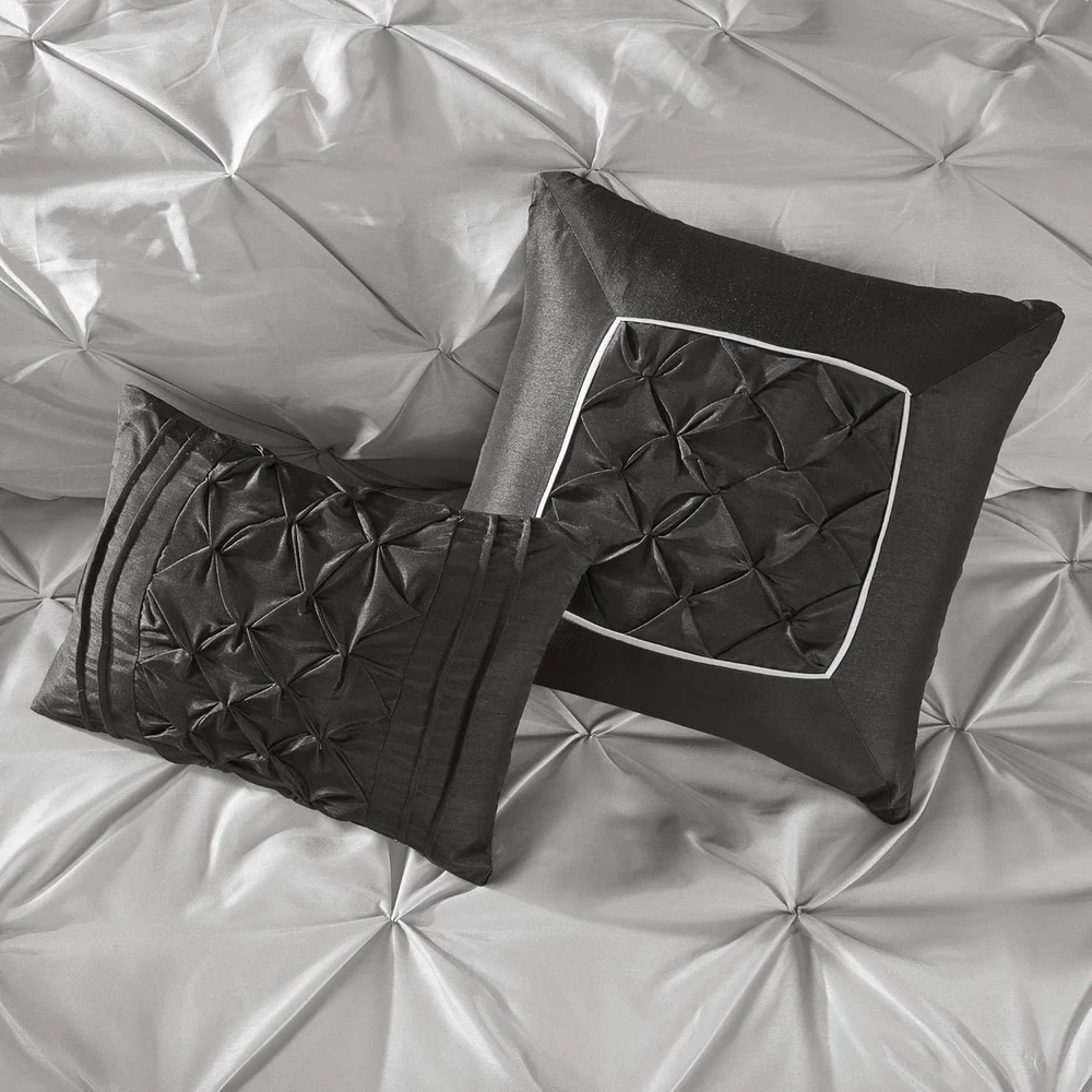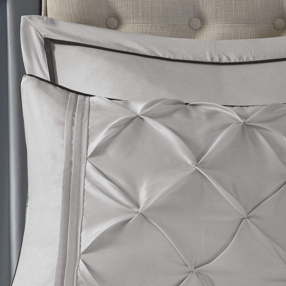 Store New Arrivals Add to Favorite View Feedback Contact Essentials Room in a Bag Faux Silk Comforter Set - Luxe Diamond Tufting All Season Bedding, Matching Curtains, Decorative Pillows, Grey Queen(90"X90") 24 Piece Description Item model number MPE10-765 Style Elegant Assembly required No Pattern Striped Country of Origin China Theme Space Number of Pieces 24 Specifications certified frustration-free Product Dimensions 90 x 90 x 1.5 inches Material Microfiber Seasons All Included Components function(f) {var _np=(window.P._namespace("DetailPageProductOverviewTemplatesJava"));if(_np.guardFatal){_np.guardFatal(f)(_np);}else{f(_np);}}(function(P) { P.when('A').execute(function(A){ A.on('a:truncate:po-attribute-truncate-1:updated', function(data) { var isTruncated = !data.truncateInstance.getIfTextFits(); var seeMoreElement = document.getElementById('po-attribute-see-more-id-1'); if(seeMoreElement) { seeMoreElement.style.display = isTruncated ? '' : 'none'; } }) }); })); 1 Comforter, 2 Standard Shams, Bedskirt, Euro 4 Decorative Pillows, Flat Sheet, Pillowcases, Fitted Window Panels, Tie Backs, Valances See more Item dimensions L x W x H 90 x 90 x 1.5 inches Fabric Type 100% Microfiber Item Weight 14.96 pounds Color Grey Global Trade Identification Number 00086569140531 Batteries required No Refill synthetic Product Care Instructions Machine Wash Size Queen (90 in x 90 in) 100% Microfiber Update your space with the Madison Park Essentials Joella 24 Piece COMPLETE Room in a Bag. The lavish tufted details flaunted on the comforter, shams, and window valances deliver an elegant statement in rich LUXURIOUS color hues. Comes with matching four window CURTAIN panels with four tie backs and two tufted valances provide the finishing touches to your bedroom. Set includes: 1 Comforter:90"W x 90"L, 2 Standard Shams:20"W x 26"L"D, 1 Bedskirt:60"W x 80"L + 15"D, 2 Euro Shams:26"W x 26"L + 2"D, 4 Decorative Pillows:18"W x 18"L/16"W x 16"L/12"W x 18"L/12"W x 16"L, 1 Flat Sheet:90"W x 102"L, 2 Standard Pillowcases:20"W x 30"L, 1 Fitted Sheet:60"W x 80"L + 14"D, 4 Window Panels:42"W x 84"L, 4 Tie Backs:4"W x 23"L, 2 Valances:54"W x 18"L Care Instructions: Machine Washable Spot Clean Decorative pillows Invigorate your space with the Madison Park Essentials Joella 24 Piece Room in a Bag. The lavish tufted details flaunted on the comforter, shams, and window valances deliver an elegant statement in bold, natural hues. A large border frames the luxurious comforter, adding charm and dimension to the bedding set. Matching shams echo the motif seen on top of the bed, creating an elegant look in your space. An included microfiber sheet set and bed skirt complements the bedding collection and offers exceptional comfort and style. Two Euro shams and four embroidered decorative pillows help to complete the bedding set, giving it a finished look. Accompanying this bedroom set are four window panels with four tie backs to keep curtains drawn open, while two tufted valances provide the finishing touches to your bedroom. This bedding set may come in rolled or compressed packing and will need to be fluffed up. Use a steam iron to help remove wrinkles easier. ABOUT US We offer the best prices around on high quality products. Our E-store includes media such as books, movies, music and games while offering electronics, toys, sporting apparel, clothing, tools, general home, garden items and more. SHIPPING We are always working hard to ensure your package arrives as soon as possible. Please understand that some factors like weather, high postal traffic, and the performance of shipping companies are outside of our control. We offer free shipping to the lower 48 states and ship within 2 business days of payment, usually sooner. We do not accept P.O. Boxes. Please provide a physical address. For shipping outside of the continental USA, we only use eBay's Global Shipping Program.The item is shipped to KY and then sent to the rest of the world. International customers are responsible for all duties and taxes. Continue to check out in order to calculate costs for shipping the item to your country. Messages regarding eBay's Global Shipping Program MUST be directed at eBay EXCLUSIVELY. RETURNS We offer a 30-Day Return Policy on items which you are not completely satisfied with. You have the option for a full-refund or an exchange of the item. No returns are available on items shipped outside of the USA. PAYMENT We accept PayPal. CONTACT US This page content is yet to come Please ad us to your favorite seller and visit again later Thank You CUSTOMER SATISFACTION We try our very best to make sure every customer is completely satisfied. If there's a problem, message us! We're happy to help.