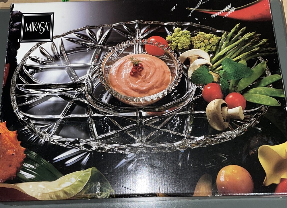 Estate MIKASA Roxborough Chip & Dip Platter Divided Charcuterie Glass Elegant.