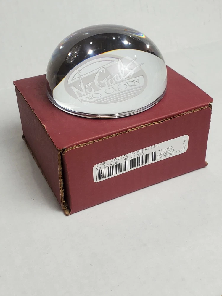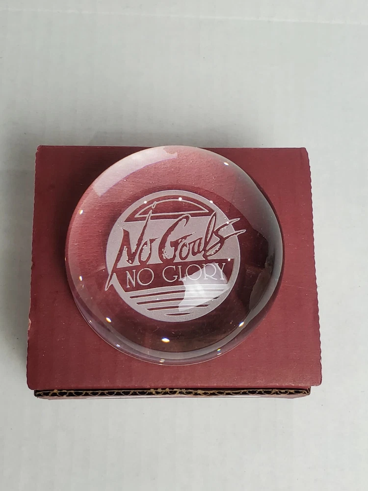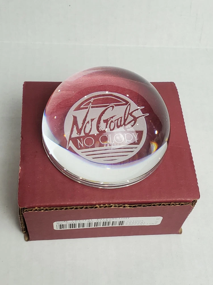 Etched "No Goals No Glory" Crystal Dome Shaped Paperweight.