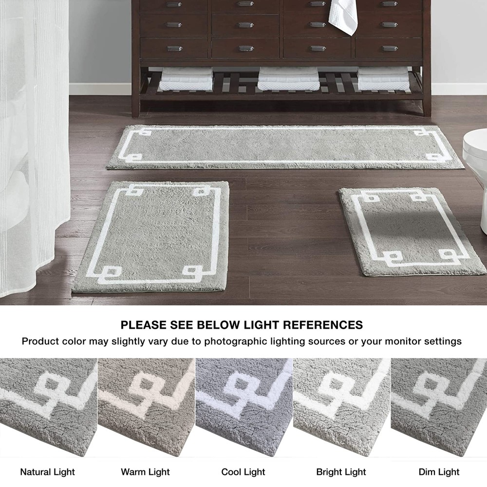 The Evan Cotton Tufted Bath Rug provides the perfect balance of comfort and style to update your bathroom. This tufted bath rug features a contrasting white border on a soft colored ground creating a clean hotel look, while the plush medium pile weight provides pure soft comfort for your feet. The light latex coated back makes this bath rug skid resistance for better safety, while also keeping rug in place throughout the day. Machine washable for easier care, this cotton bath rug is also OEKO-TEX certified, meaning it does not contain any harmful substances or chemicals ensuring quality comfort and wellness. Bath rugs are sold separately in multiple sizes and colors, making it easy to complete any bathroom size and decor! Made from 100% cotton for a perfect balance of comfort and style to your space. Due to the nature of the fabric, some linting may occur initially, allow 3-5 washes to subside. Over time some threads may come loose; simply trim any loose threads as needed The plush medium pile weight ensures pure soft comfort for your feet, with high absorbency and a cool, striking contrast white border design for a clean hotel look right in your own home Premium shower rug that is Oeko-Tex certified to be free of any chemicals and harmful substance. And the non-skid latex backing helps keep the rug in place for better safety What's in the box? 1 Bath Rug: Size 24"W x 72"L. Medium pile 0.5" high Care instructions: Machine wash cold seperately, on gentle/delicate cycle. Use mild detergent and non-chlorine bleach when needed. Tumble dry low. Some linting may occur due to nature of fabric. Allow 3-5 washes to subside. Do not iron. Do not dry clean