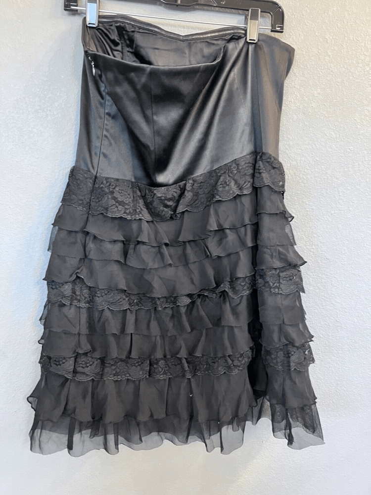 Express Design Studio Dress Strapless Ruffle Mini Tiered Black Womens 12...