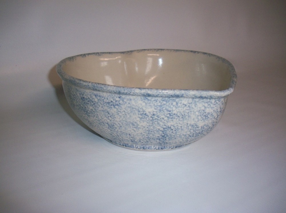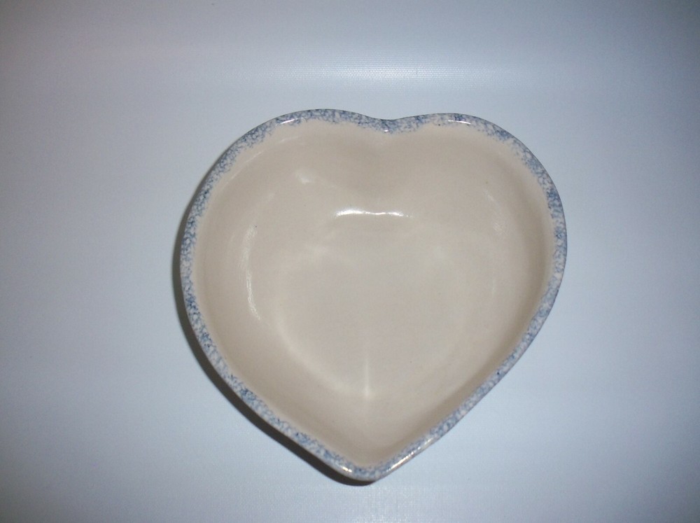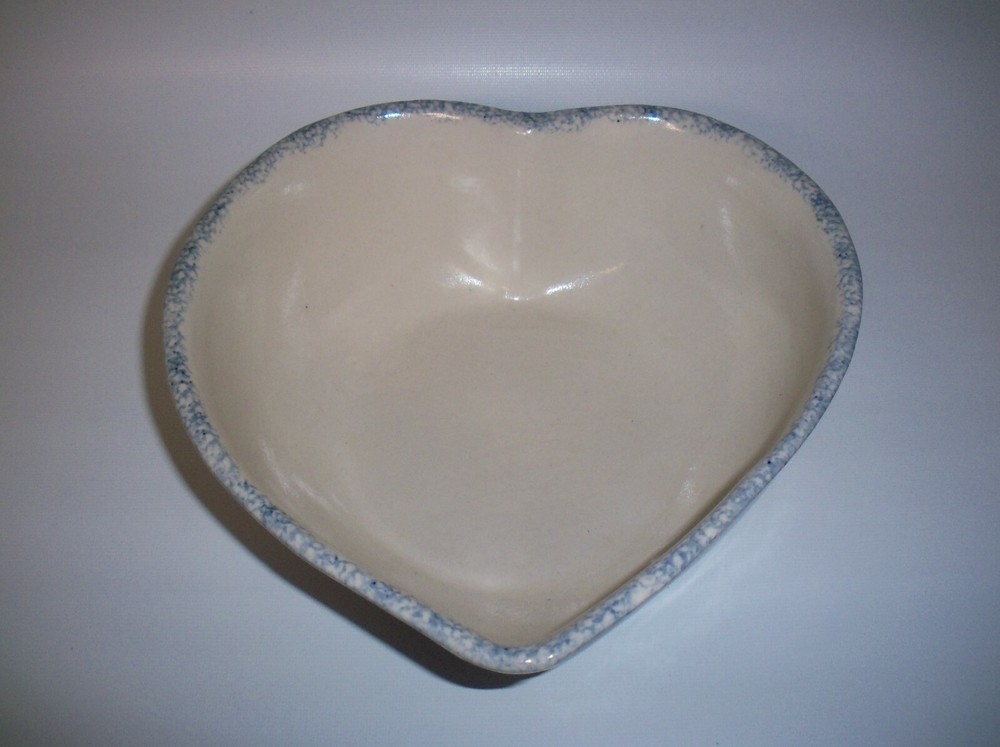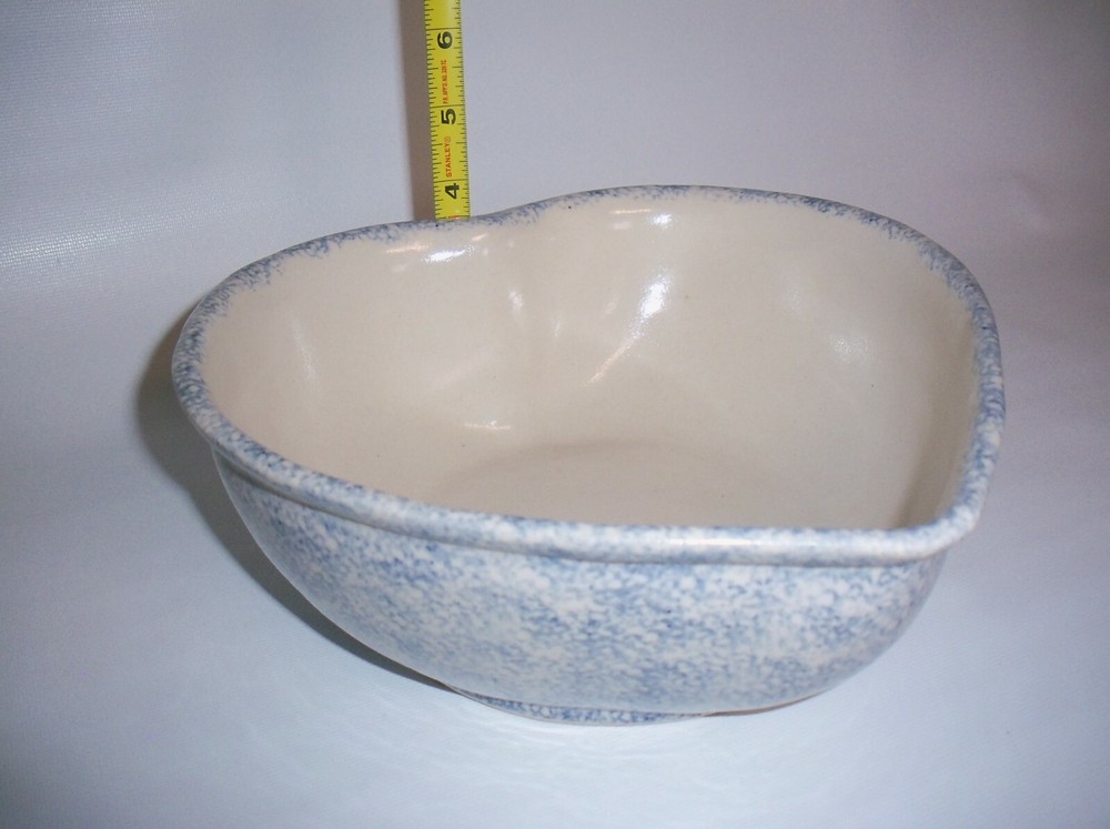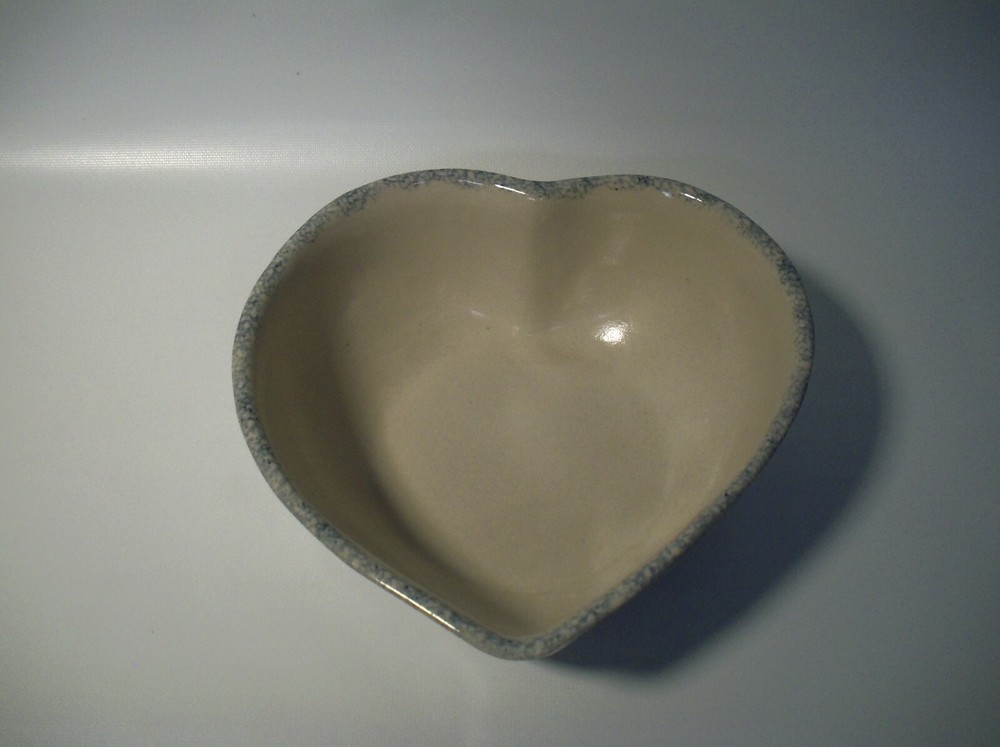FLAT EARTH Studio Art Pottery Large Spongewear Heart Shaped Bowl, 1989. Pre-owned in excellent, like new condition. No chips, cracks, color loss, crazing, or stains. Perfect in every way. Rare! Use as a fruit bowl or a serving dish. CabA.5