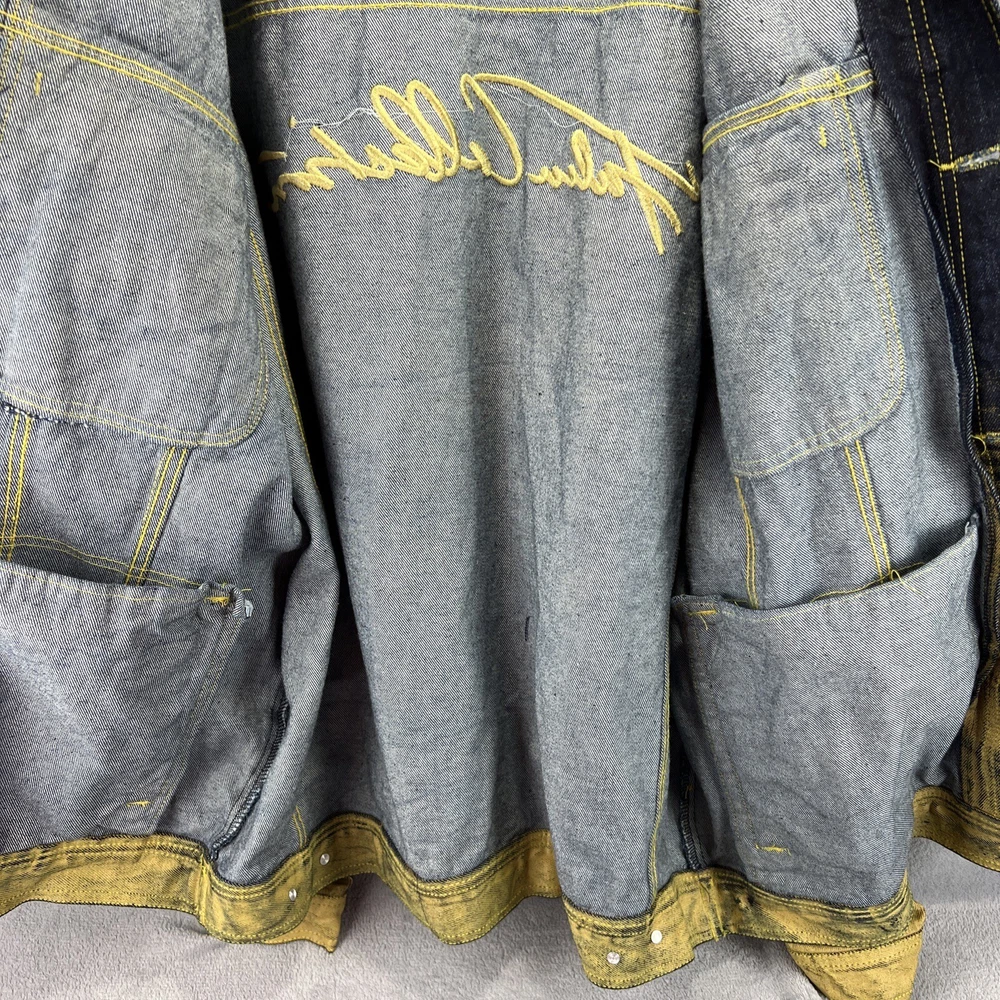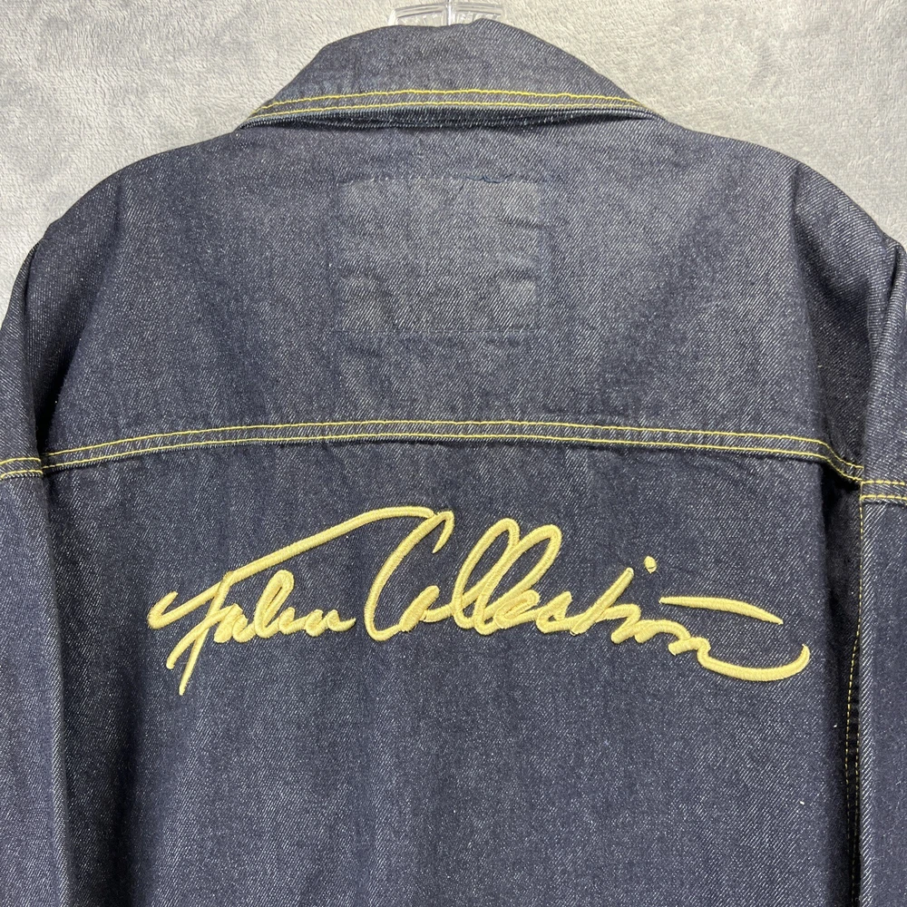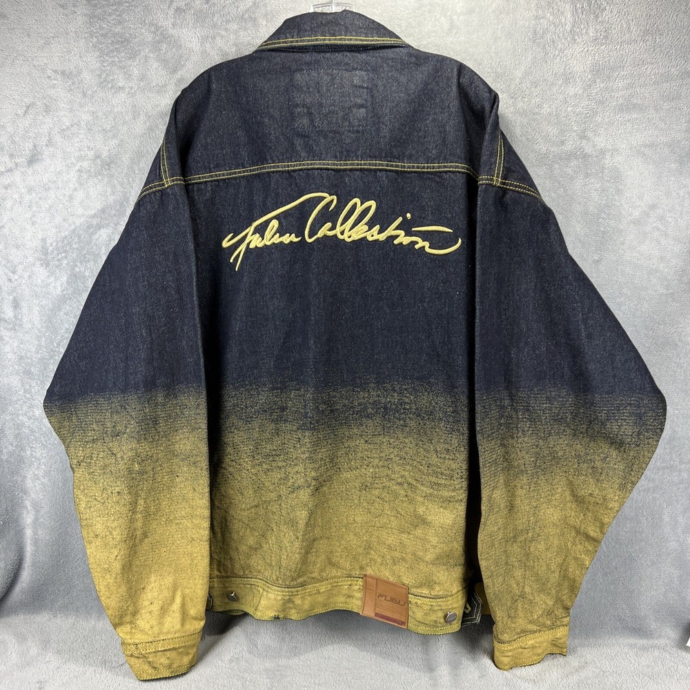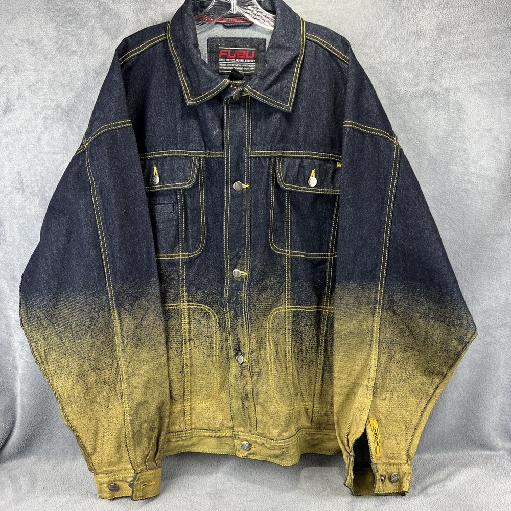 FUBU Limited Edition Jean Jacket Adult 2XL Dark Blue Denim with Yellow Dip Dye Effect Trucker Style 100% Cotton Button Front Pockets Embroidered Spellout on Back Light spot near collar and trim on tag near hem is coming loose. See last 2 photos. Condition, Measurements, Shipping Preowned items have no major flaws, stains or damage unless stated otherwise. If there is a significant flaw, it will be noted and shown in the photos. Please note, measurements provided are approximate. Previous laundering of clothing items may change the actual sizing. Please go by actual measurements instead of tag sizing to ensure the best fit. Actual measurements for clothing items are provided in the photos. Stored in a smoke-free environment Free returns on unworn/unused items - no questions asked. I want you to love your items! I offer discounts on multiple purchases so be sure and browse my store. Thank you for visiting Twinkletown Fashion. Be sure and check out my other store, Twinkletown Treasures (eBay ID ruskdesign1638) featuring vintage collectibles!