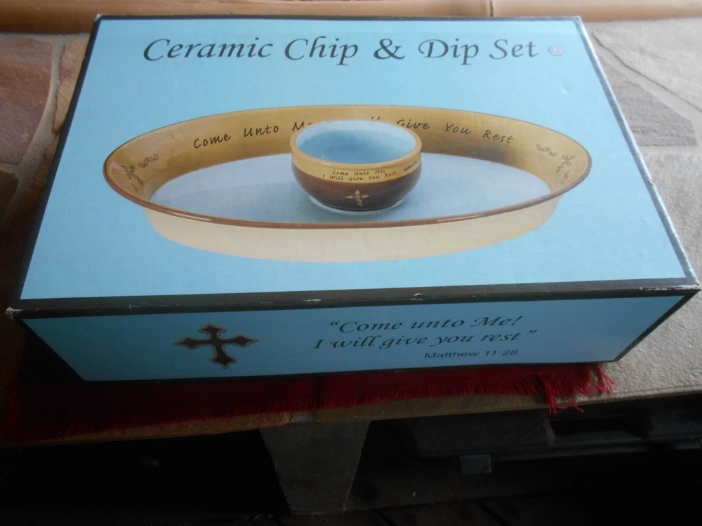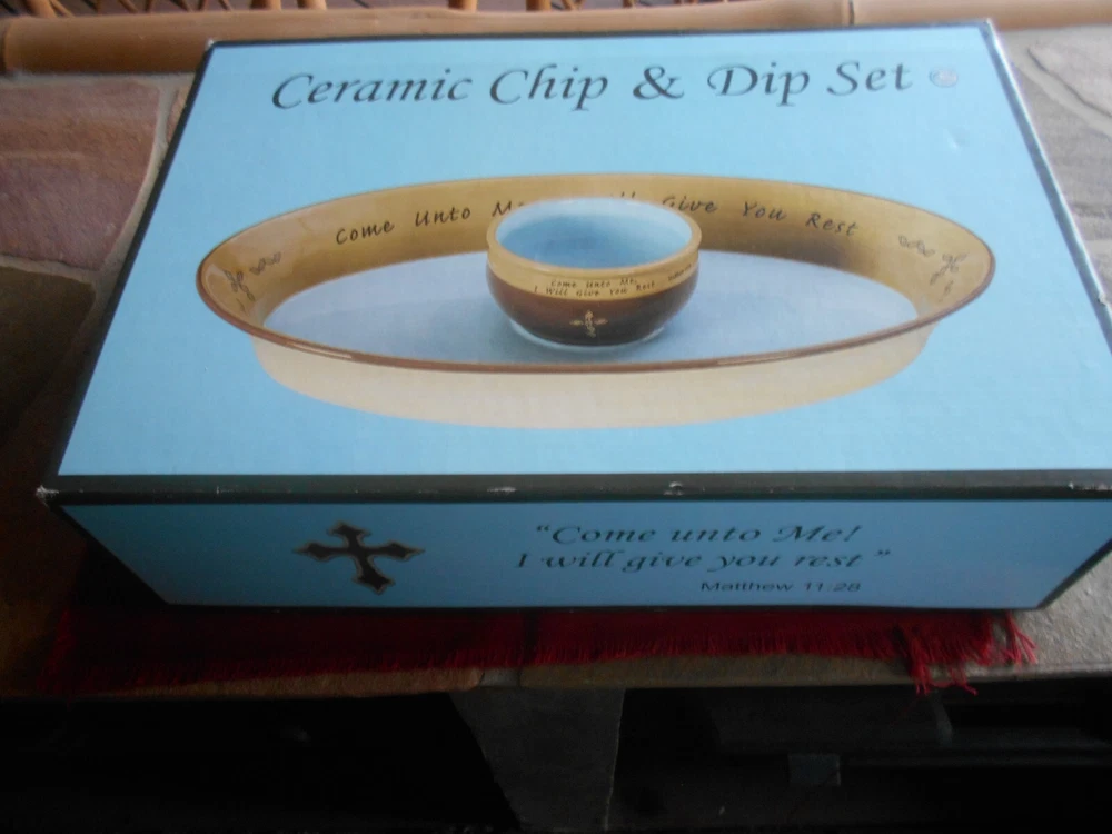 Faith At Home CERAMIC CHIP & DIP SET - New In Box - Come Unto Me! I Will Give You Rest. Matthews 11.28