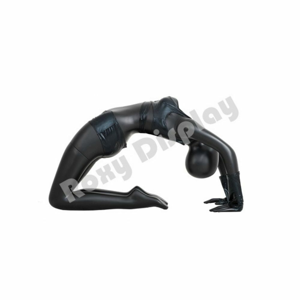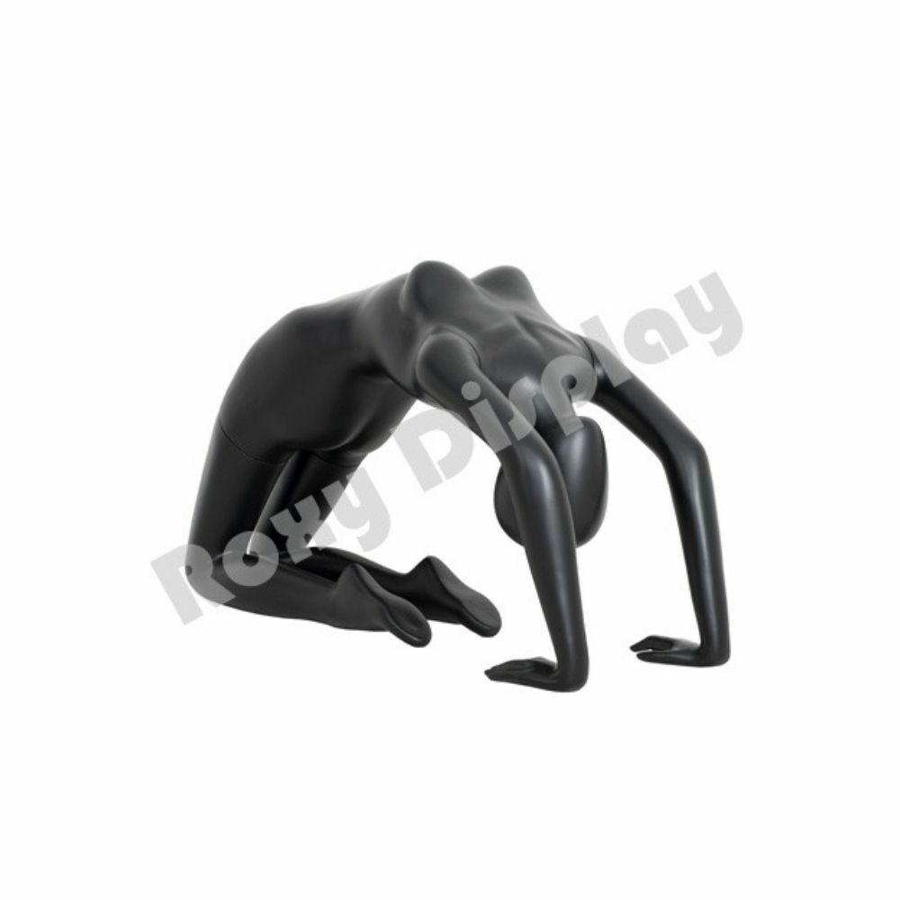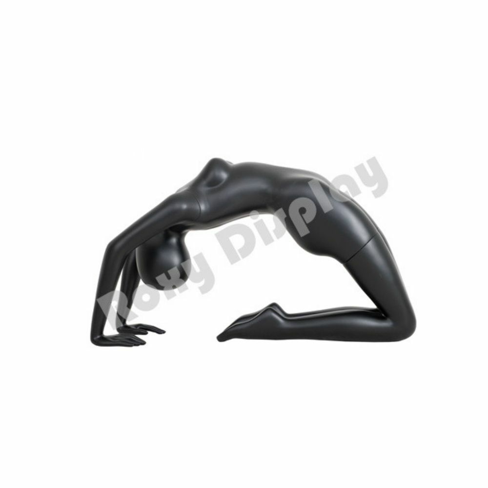 Female Matte Black Yoga Mannequin in Pigeon Pose - Pigeon pose matte female black yoga mannequin - Great for sporting events, displays, exhibitions, yoga studios, etc .. Feature: detachable arms, left and right leg, hands and torso for easy dressing. Length:42.5'' Width:16'' Height:24''