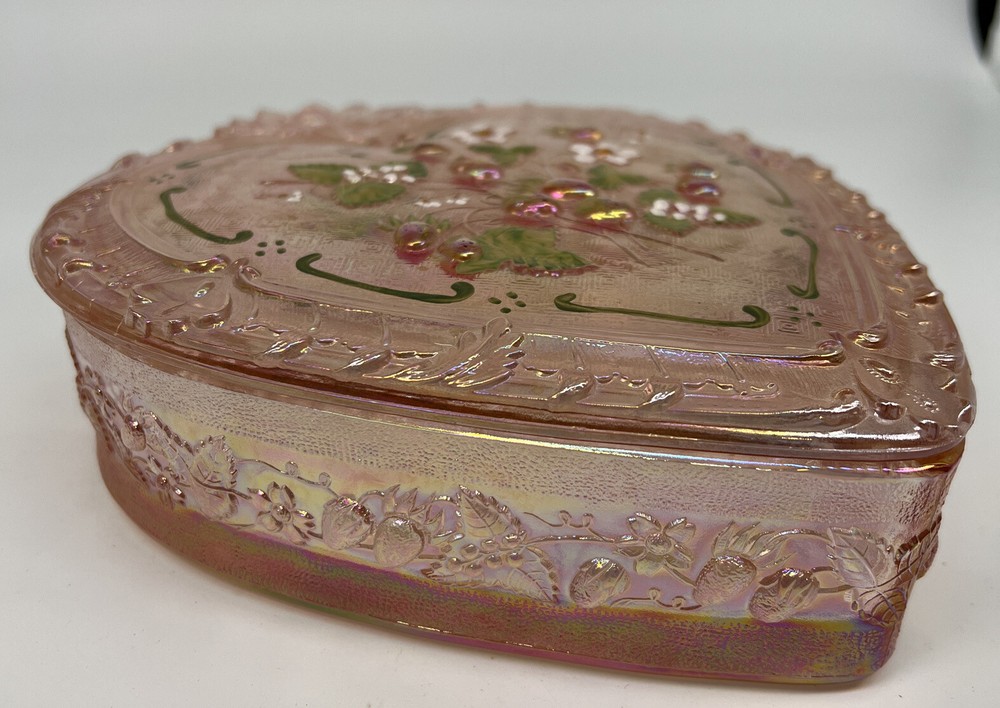 Fenton 2003 Museum Collection Heart Shaped Trinket Box Iridescent Pink XL Signed. Stunning 7.5”x8.5” Extra Large heart shaped trinket box. Excellent condition and quality heavy, made to last generations. No cracks or chips. Weighs 4.1Lbs before boxing. Please see all pictures for best description. Parcel post NOT recommended for fragile items. AUCTION TERMS: Sorry, NO INTERNATIONAL SHIPPING. Shipping to Alaska and Hawaii will usually take longer than stated. I always combine shipping when possible. Shipping is not refundable on returns. Please READ description and EXAMINE photos carefully. Items are estate finds and SOLD AS IS. Items are used and can show wear such as nicks, chips, scuffs, soiling etc from normal use. I will call out any problems that I see. I try to describe each item to the best of my knowledge but I am not an expert on all items. If you have a question Ask and I will do my best to answer. Payment expected within 3 days. I will ship out once payment clears; usually within 3 business days. Thanks for bidding! - Know what you are bidding on. Ask questions. Look at pictures. Read description. Sold as is. We strive to be a 5 stars seller, if you feel you can not leave 5 stars contact me and we can work something out. Thank You.
