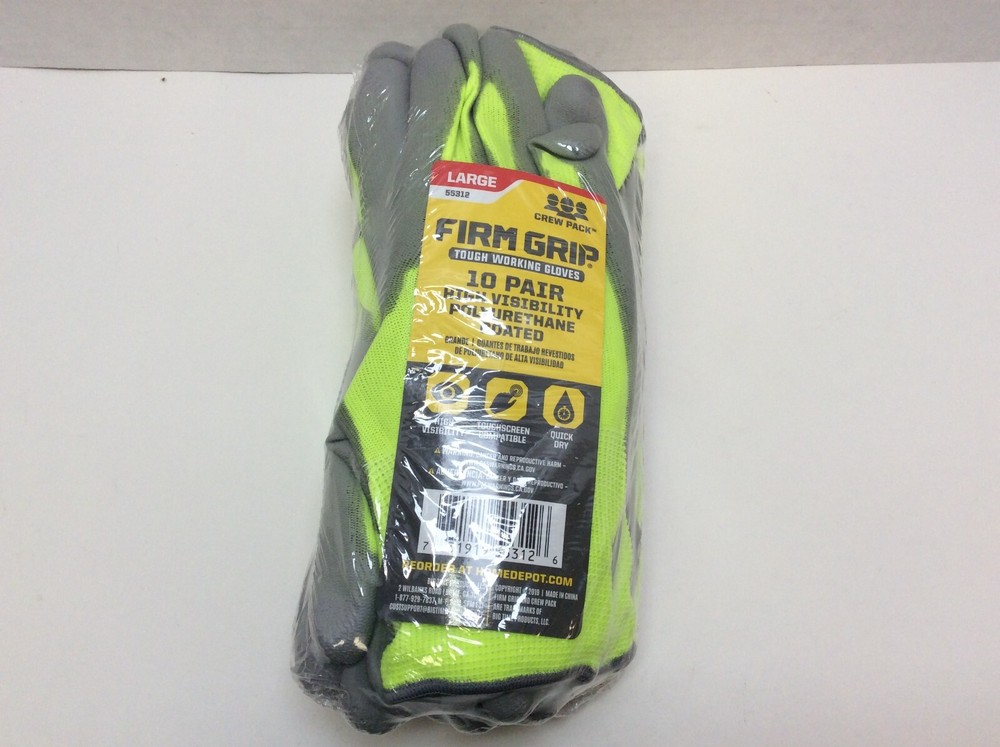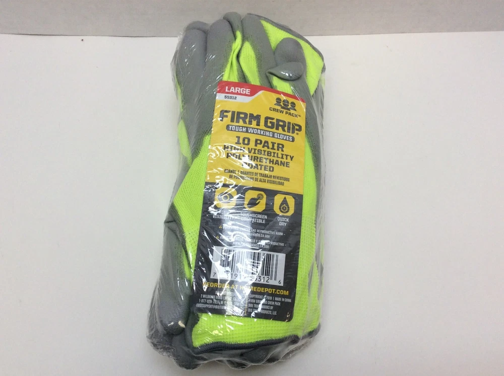 C L O S E O U T S F O R L E S S Firm Grip High Visibility PU Dipped Gloves with Touchscreen 10 Pairs - Large PRODUCT DESCRIPTION Latex-free coating provides additional protection against punctures and abrasions Latex-free construction ideal for skin sensitivities Lightweight, breathable construction for all day comfort Large size for a comfortable fit BEST OFFERS If Best Offer is available, you will find a button under Buy It Now. Many of our listings are already marked at the lowest available price, and will not have the Best Offer feature in place. If you are purchasing only one item, please take into account that we must cover our costs, which includes the item, shipping and handling, and eBay and PayPal fees. We are more than happy to consider all offers, but please make sure it is a fair price on both ends. If you are sending a BEST OFFER and then decide to BUY IT NOW instead, please cancel your offer to avoid confusion and double charging. PAYMENT We only accept PayPal and we are required to collect sales tax on all purchases shipped to Georgia. If you make an offer and it is accepted please make payment within 24 hours of purchase. SHIPPING We only ship to the United States, specifically the 48 contiguous states: we do not ship to Alaska, Hawaii, or Puerto Rico. We do not ship to APO/FPO and prefer a physical address rather than a P.O. Box, as our larger packages are sent via Fedex/UPS. All orders are shipped the same day that payment clears, or next day if it is after 4 p.m. EST. Orders submitted on Friday after 4 p.m. will be shipped the following business day. We provide a tracking number for all purchases. FEEDBACK We leave positive feedback for all buyers upon shipping. We ask that if you are not satisfied with our product or service, please contact us so we have the chance to fix the issue before you leave neutral or negative feedback. RETURN POLICY We accept returns within 30 days of purchase. Please submit a return request through your eBay dashboard and you will be provided with the proper return label. CONTACT US We strive to review offers and answer questions quickly, but please be aware that we are a brick and mortar business with retail hours: Monday - Friday, 9:00 a.m. - 5:00 p.m. EST. Messages submitted late in the day will be answered the next business day, and weekend messages may not be answered until the following Monday. Browse Our Store Everything from Electronics to Home Decor, Office Supplies, Wholesale Lots and More. Everything for ANYONE looking for a deal!