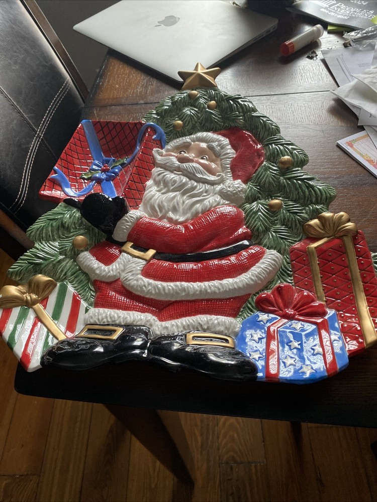 The Fitz and Floyd Large Holiday Santa Chip and Dip Platter is a festive centerpiece for Christmas gatherings. Made of ceramic in China, it features a Santa Claus theme with vibrant multicolor accents. Perfect for entertaining adults during the holiday season.
