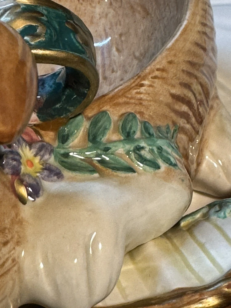 Beautiful Dresden figurine as described. No damage. The packaging was “above and beyond” expectations for these very delicate and fragile figurines. Shipping was fast and very reasonable. Excellent seller and would highly recommend!! A+++