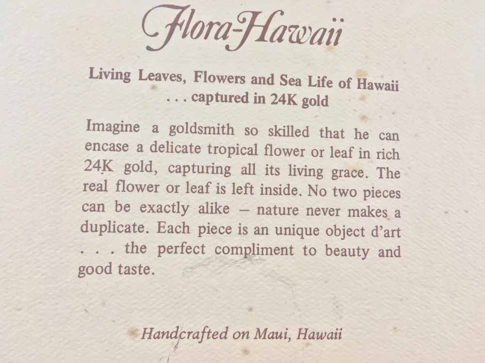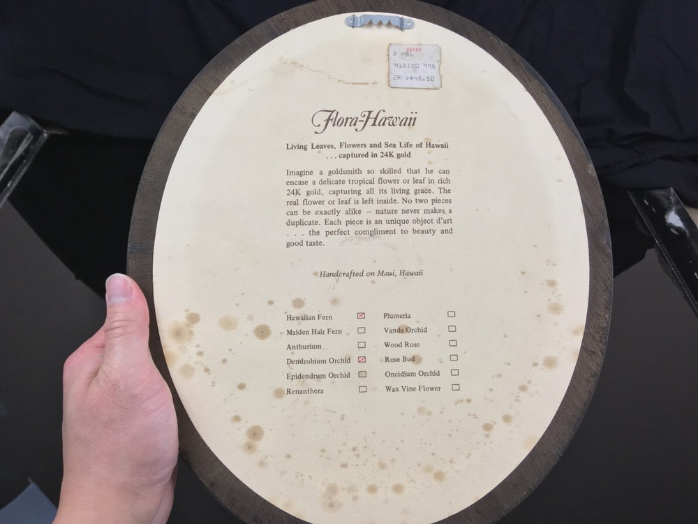 LARGE VINTAGE GOLD DIPPED FERN HAWAIIAN DISPLAY. PREOWNEWD CONDITION AS PICTURED WITH FOXING DAMAGE ON THE CARDOARD BACKING....