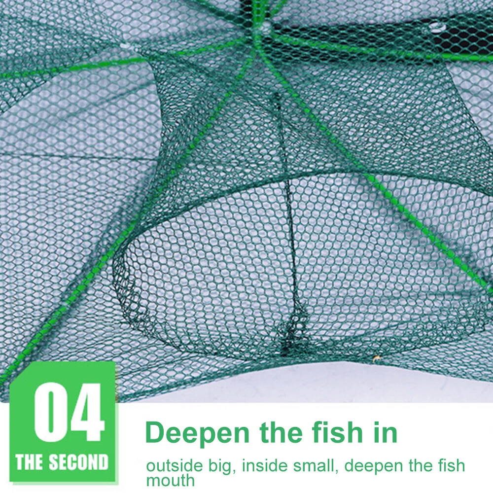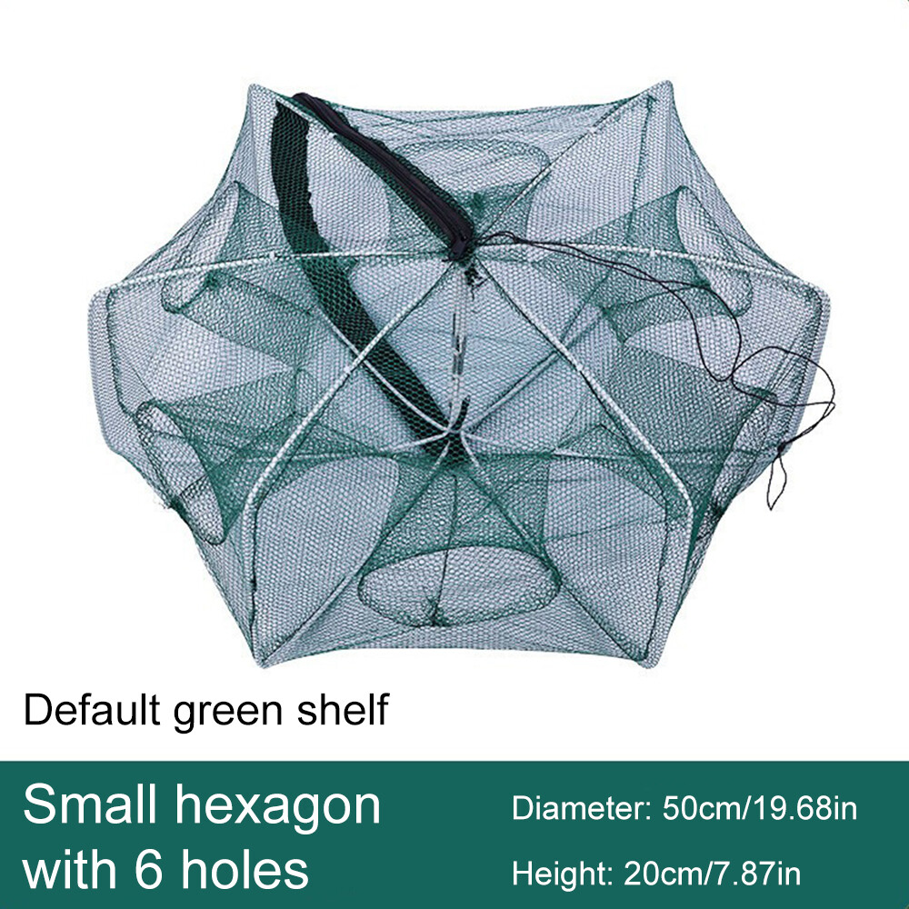 Features: 1. Easy to use, no installation required, just pull the handle. 2. The fishing net trap adopts a 6/8-entry design, which is very suitable for catching herring, eel, crab, lobster, small fish, shrimp, and crayfish. 3. Adopting a 6/8 solid steel bar bracket and suitable mesh, it is sturdy, durable, and has a strong sense of three dimensionality. 4. Special zipper design for easy retrieval of prey. 5. Foldable into small sizes, lightweight and portable. Specifications: 1. Material: Mesh, Nylon, Steel 2. Color: Green 3. Size: 50/60/70CM (optional) 4. Type: 6-hole/8-hole (optional) Package List: Automatic fishing net shrimp cage * 1 Be careful: 1.Due to lighting effects, monitor brightness/contrast settings, and other factors, there may be slight differences in color tone between the website photos and the actual product! 2. All items are manually measured, and there may be a difference of 1-3cm. Please understand! On Nov 4, 2024 at 17:36:46 PST, seller added the following information: