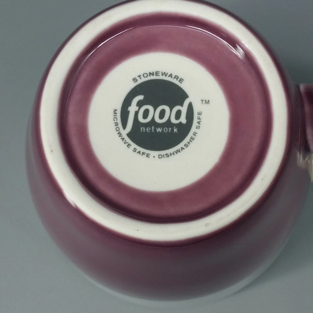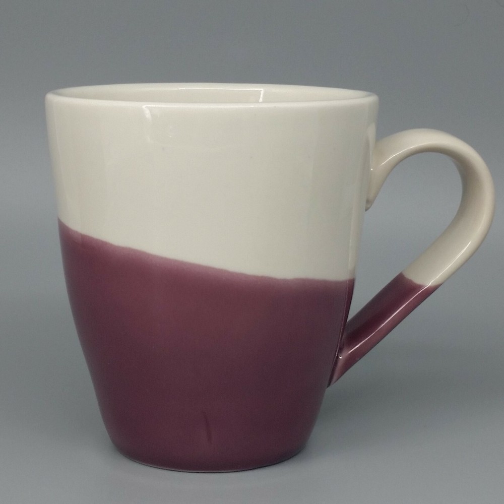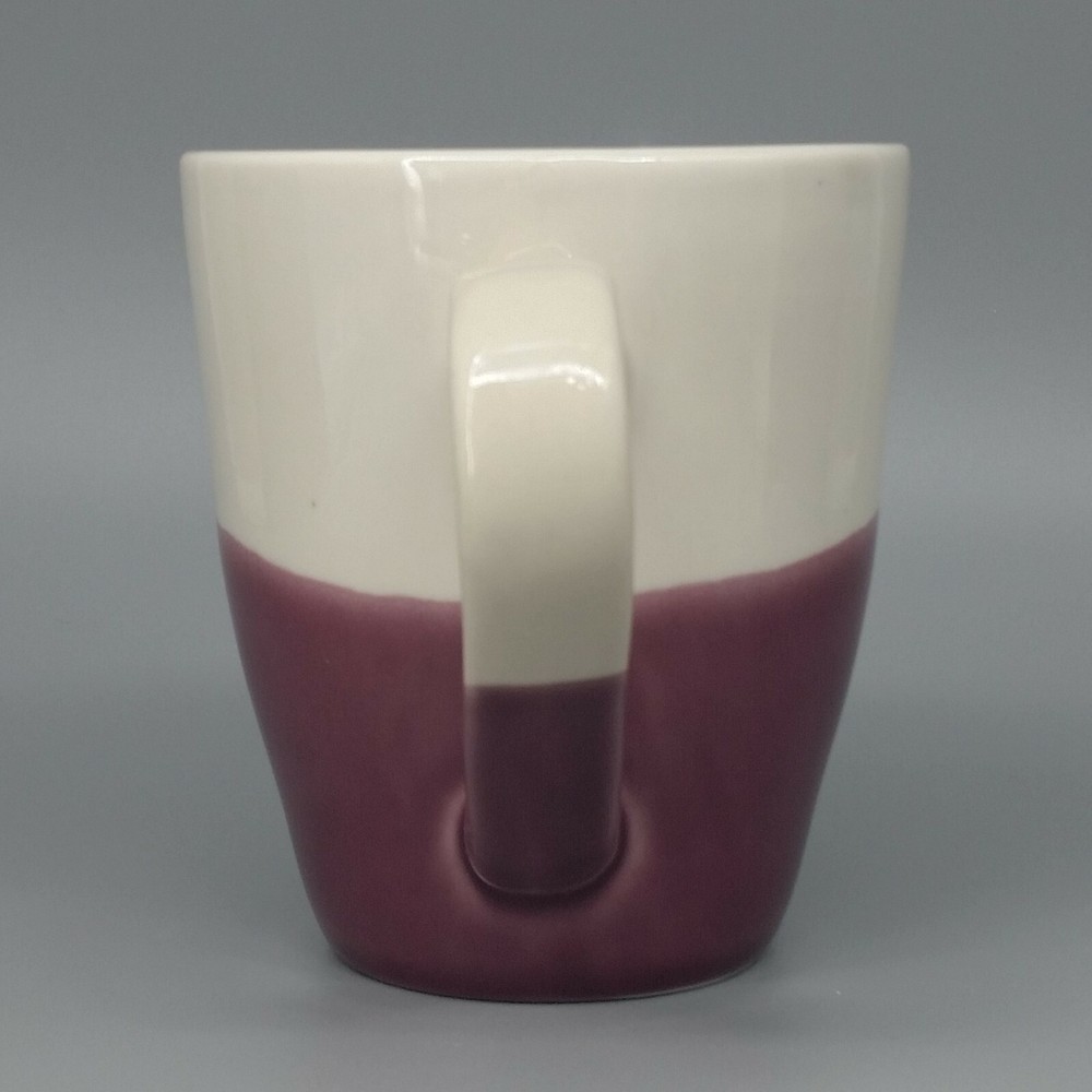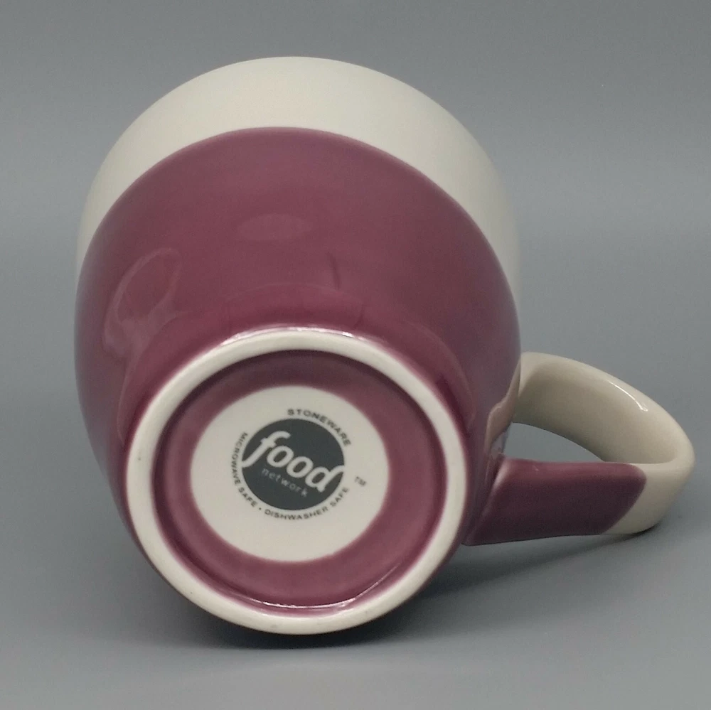 Food Network Dipping Stoneware Mug Purple White Dip Dye Angle Pattern Large 15oz Food Network Large Stoneware Coffee Mug in the "Dipping" pattern features a dip dye pattern of purple against a soft white background. Mug holds 15 fl ounces. Condition: Clean, pre-owned condition. No chips, cracks or repairs. Has some light color variations in purple portion that are a result of the dying method and original to manufacture. Has a few pinpoint sized spots inside mug - 1 near lip, one on bottom and 2 more on sides. They may be utensil marks, but I believe they are also original to manufacture as they appear to be underneath the glaze. White spots and streaks are reflections from photography lights. Material: Stoneware Capacity: 15 fl ounces Color: Purple, white Dimensions: 4.5" H. x 4" diameter at rim. Weight: 1.2 lbs Ships within 2 business days from payment. Thank you for shopping with Good Karma Resale where 10% of all net sales are donated to worthy charities.