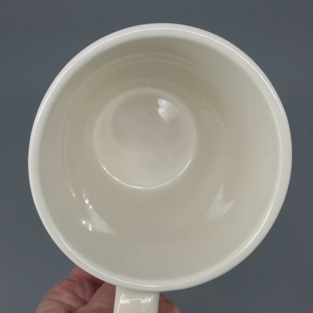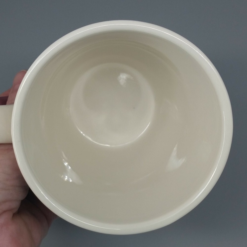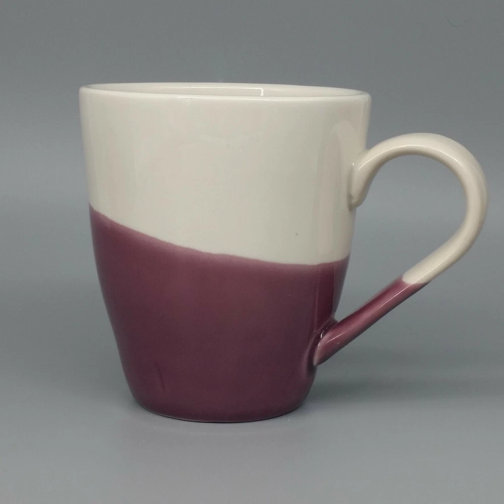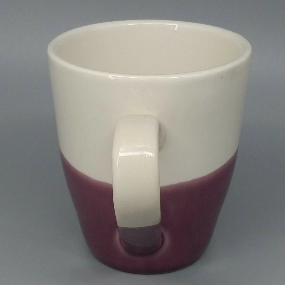 Food Network Dipping Stoneware Mug Purple White Dip Dye Angle Pattern Large 15oz Food Network Large Stoneware Coffee Mug in the "Dipping" pattern features a dip dye pattern of purple against a soft white background. Mug holds 15 fl ounces. Condition: Clean, pre-owned condition. No chips, cracks or repairs. Has some light color variations in purple portion that are a result of the dying method and original to manufacture. Has a few pinpoint sized spots inside mug - 1 near lip, one on bottom and 2 more on sides. They may be utensil marks, but I believe they are also original to manufacture as they appear to be underneath the glaze. White spots and streaks are reflections from photography lights. Material: Stoneware Capacity: 15 fl ounces Color: Purple, white Dimensions: 4.5" H. x 4" diameter at rim. Weight: 1.2 lbs Ships within 2 business days from payment. Thank you for shopping with Good Karma Resale where 10% of all net sales are donated to worthy charities.