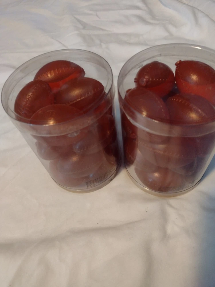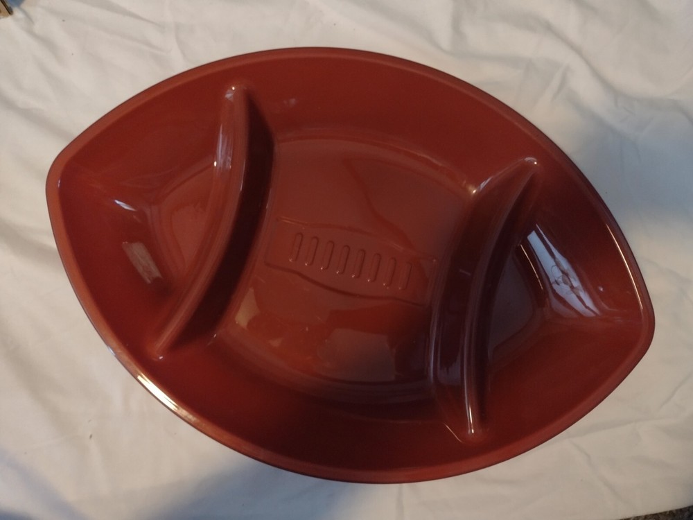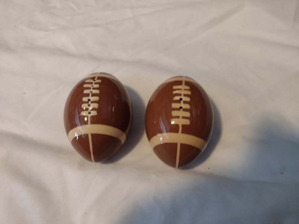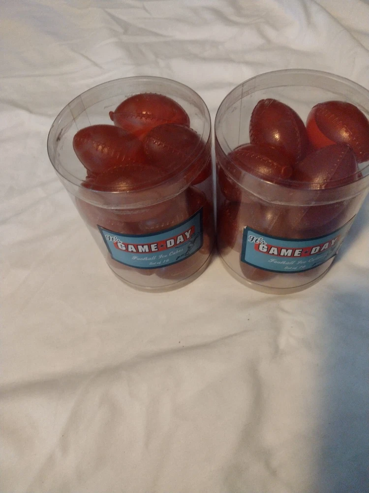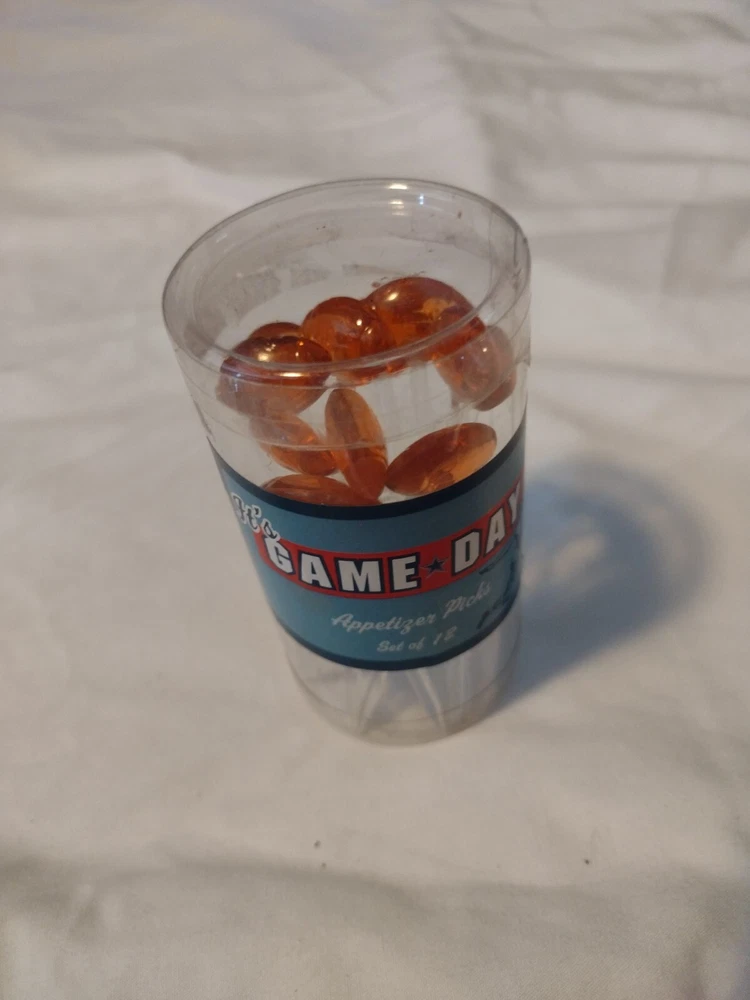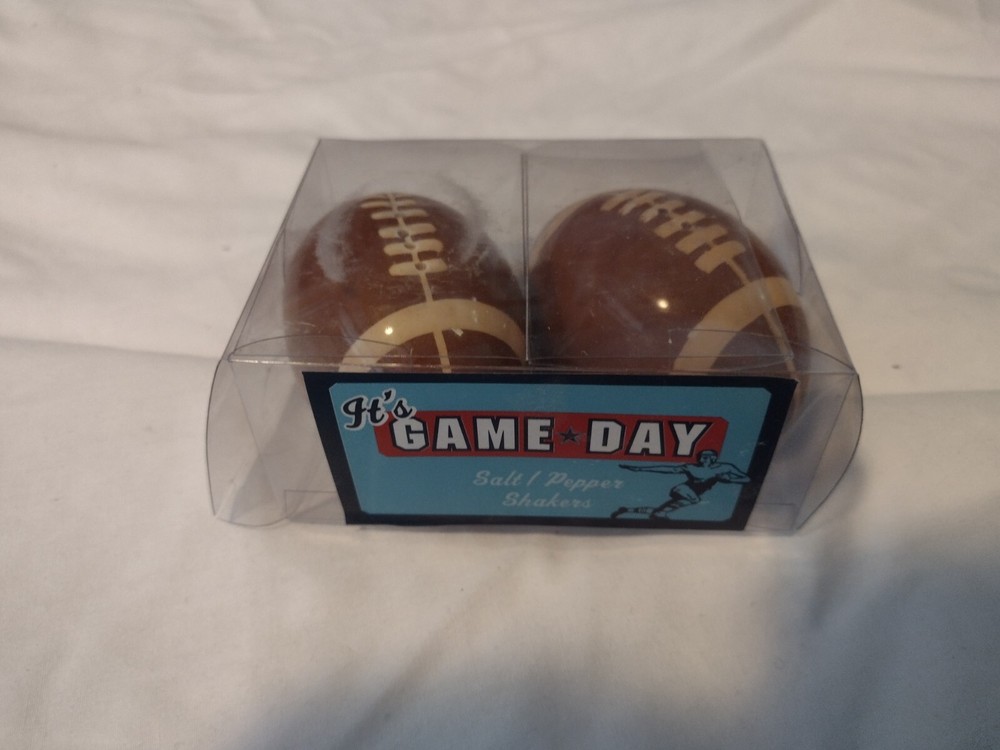 Get ready for the big game with this football-themed serving tray set! This set includes a large serving tray perfect for chips and dip, as well as salt and pepper shakers, football-shaped ice cubes, and snack picks. The glossy brown plastic finish gives it a sleek look. With a size of 17 inches in length and 11.5 inches in width, it's perfect for entertaining guests during football season. There is 11 picks. See pictures and ask any questions you may have.