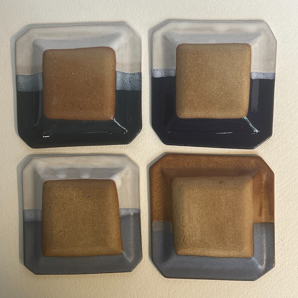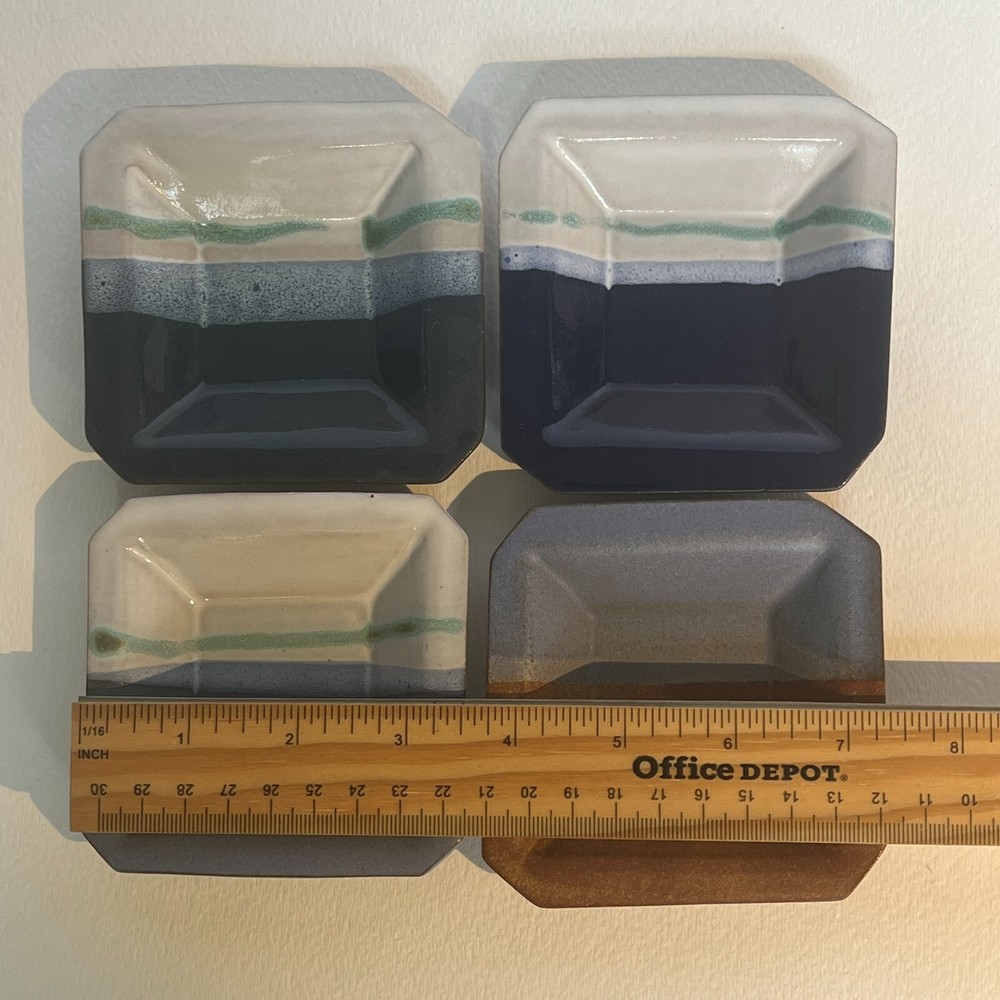Frank DiGangi Studio Pottery Plates Sushi Dipping Dishes Set 4 Artisan Stoneware OOAK. Condition is Gently Preowned. Shipped with USPS Ground Advantage Mail....