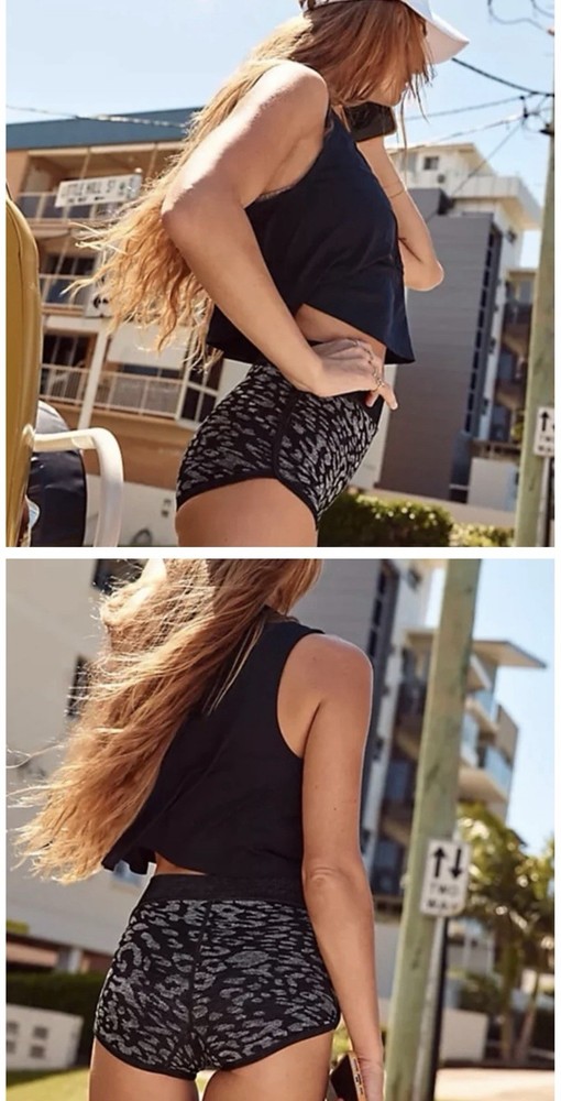 These have been worn and washed maybe once and they are in great condition with no marks or flaws. These have a ton of stretch and some compression. I have included a photo of the fabric content tag within the pictures. Hip to hip: 13 inches Rise: 9 inches Inseam: 3 inches