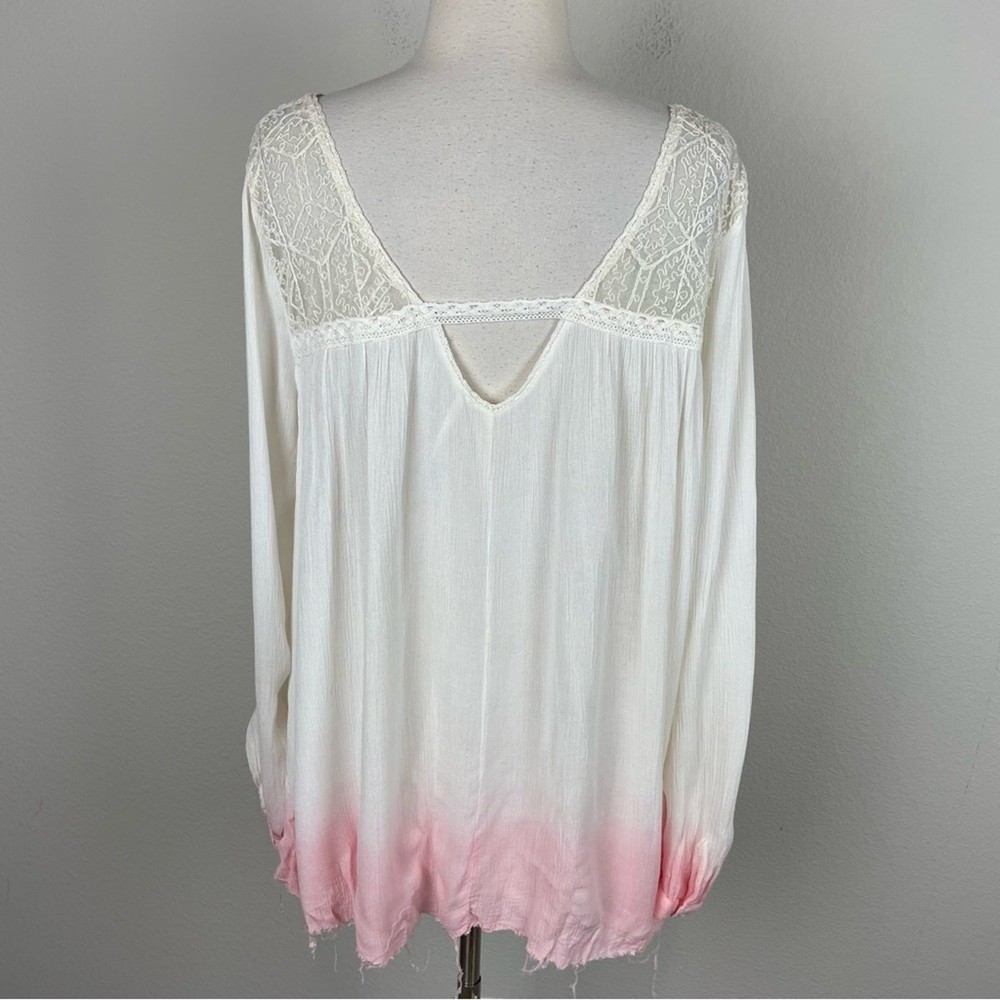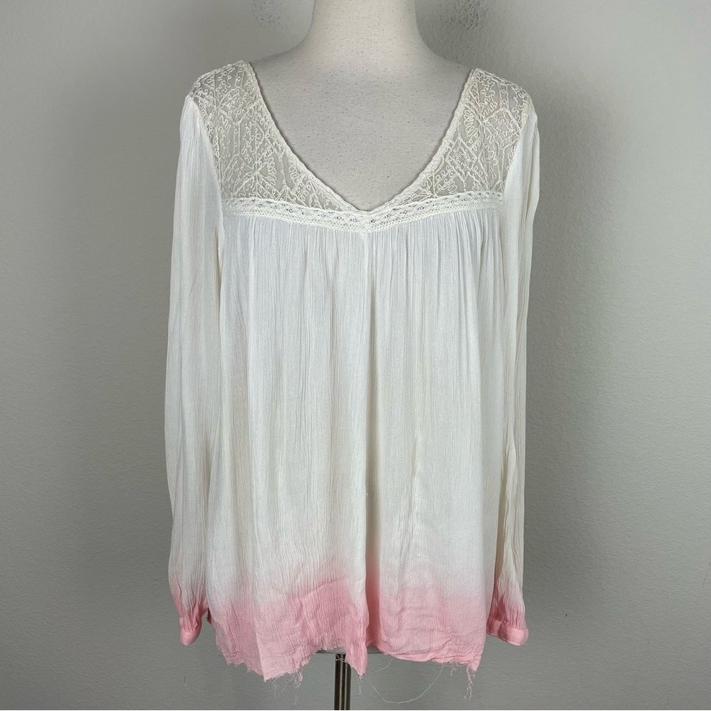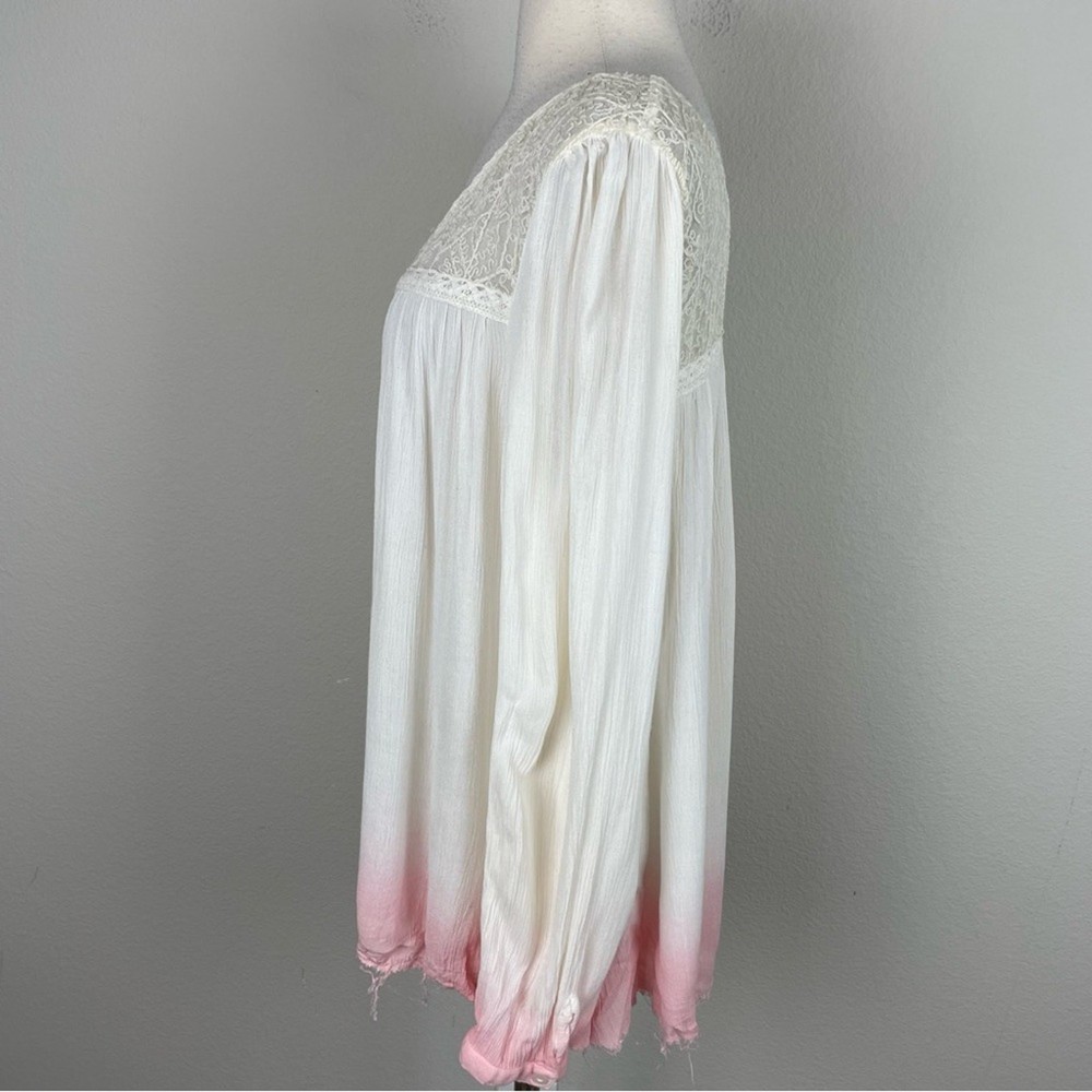 <![CDATA[<div>Free People Off White Pink Dip Dye Ombre Top Large intentional fraying at hemline see photo fabric tag has been removed but feels like a gauzy cotton or cotton blend IMO 22" pit to pit 28" length Measurements are approximates boho bohemian cottagecore Pre owned good condition thirtytwo13 -0011 ppkinv 12os