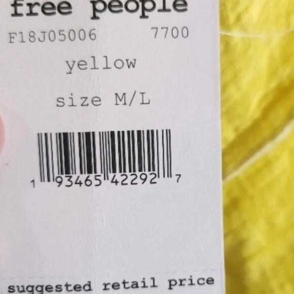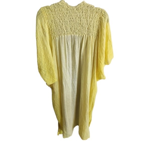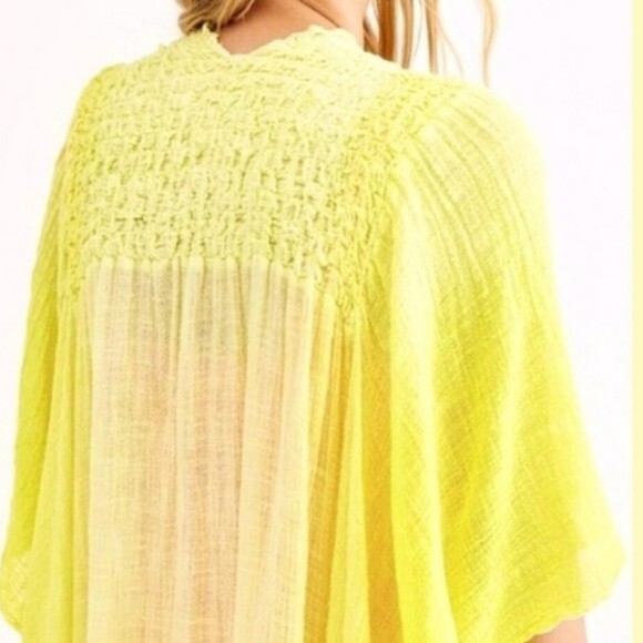 Free People One Angelica Yellow Dip Dye Kimono Coverup Brand New with Tags Size M/L Gauze Fabric Cotton Viscose Blend Side Slit Vent Detail Open, No Closure Made in India...