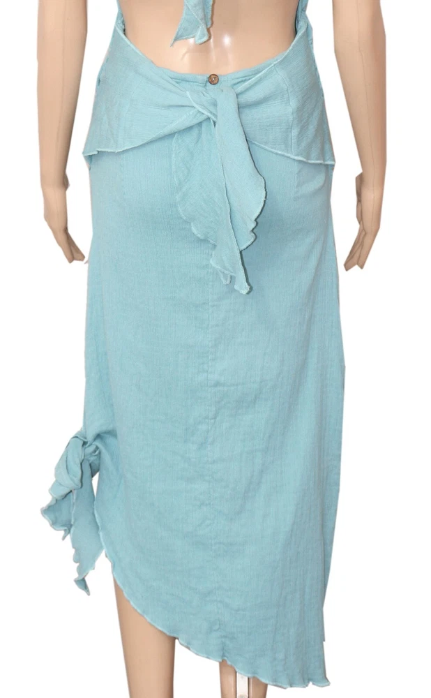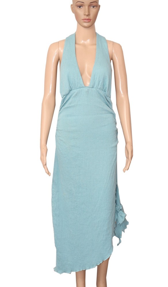 Free People Take A Dip Midi Dress Tie Back Halter Strap Turquoise Asymmetrical L Condition : This item is missing tag, wash care & Label. Measurement details Size - Large Bust - It can fit 37"-38" Waist - 16"across(laying flat) 18"across(Stretched) Length - 36"Shorter Part 46"Longer Part Color - Turquoise Fabric - Cotton & Elastane Item details Slim throughout with cozy stretch fabric Plunge neckline, tie-back halter strap, back button-up detail, asymmetrical hemline with tie detail SHIPPING We offer combined postage for additional items at 50% OFF. If you buy more than one items, highest shipping cost (among all your purchased items) will be calculated as first item shipping cost To combine postage, after adding all the items in your shopping cart, please send us a message to request for combined invoice. Please do not pay before receiving the combined invoice otherwise eBay will charge multiple Shipping and Handling fees. HANDLING TIMES We ship within 3-4 business days (excludes Saturday, Sunday, and holidays) from receipt of payment We are not responsible for any custom charges or other fees. FREE SHIPPING (ONLY DOMESTIC)-ORDER MUST BE MORE THAN $150.(Without offer) PAYMENT METHOD We accept PayPal Transactions. and the payments must be made immediately. PayPal accepts all major credit cards. RETURN POLICY We accept returns within 30 days after purchase. All PRODUCTS MUST be in the original shipping condition for a refund. We inspect all returned items before a refund or exchange is given. Signs of wear and/or damage will not qualify for a refund or exchange FEEDBACK We put really hard work that you will be satisfied. If there is a problem with your order, please contact us and give us an opportunity to make things right before leaving a negative or neutral feedback. Ebay feedback are very important to our business. Once you have received the purchase please leave us the 5-star positive feedback. We will do the same. SUPPORT If you have any questions, do not hesitate to contact us. We respond to most inquiries within 12-24 hours. THANK YOU!