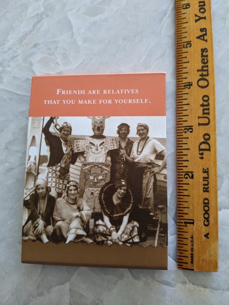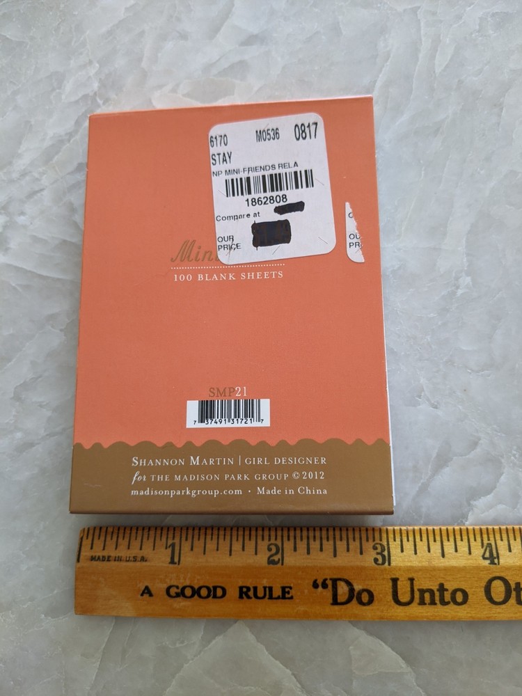 "Friends are Relatives that You Make for Yourself" This Mini Pocket Notepad by Shannon Martin for The Madison Park Group is a compact note pad with 100 sheets measuring 3" x 4". It features a magnetic flap closure for convenient storage and security. Perfect for keeping small notes or ideas organized and easily accessible, this notepad is ideal for on-the-go use or for jotting down quick thoughts. The sleek design and quality craftsmanship make it a practical and stylish addition to any stationery collection.