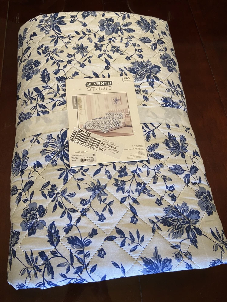The Seventh Studio Alfie Country Blue/White Floral 3pc Quilt Set is a charming addition to any bedroom with its floral pattern in shades of blues and white. This full/queen size quilt set includes a quilted square-shaped quilt measuring 90 inches in length and width. Made of 100% polyester material, this quilt set by Seventh Studio is machine washable, making it easy to care for and maintain. Perfect for those who appreciate a country-style aesthetic, this quilt set adds a cozy and inviting touch to the bedroom decor.