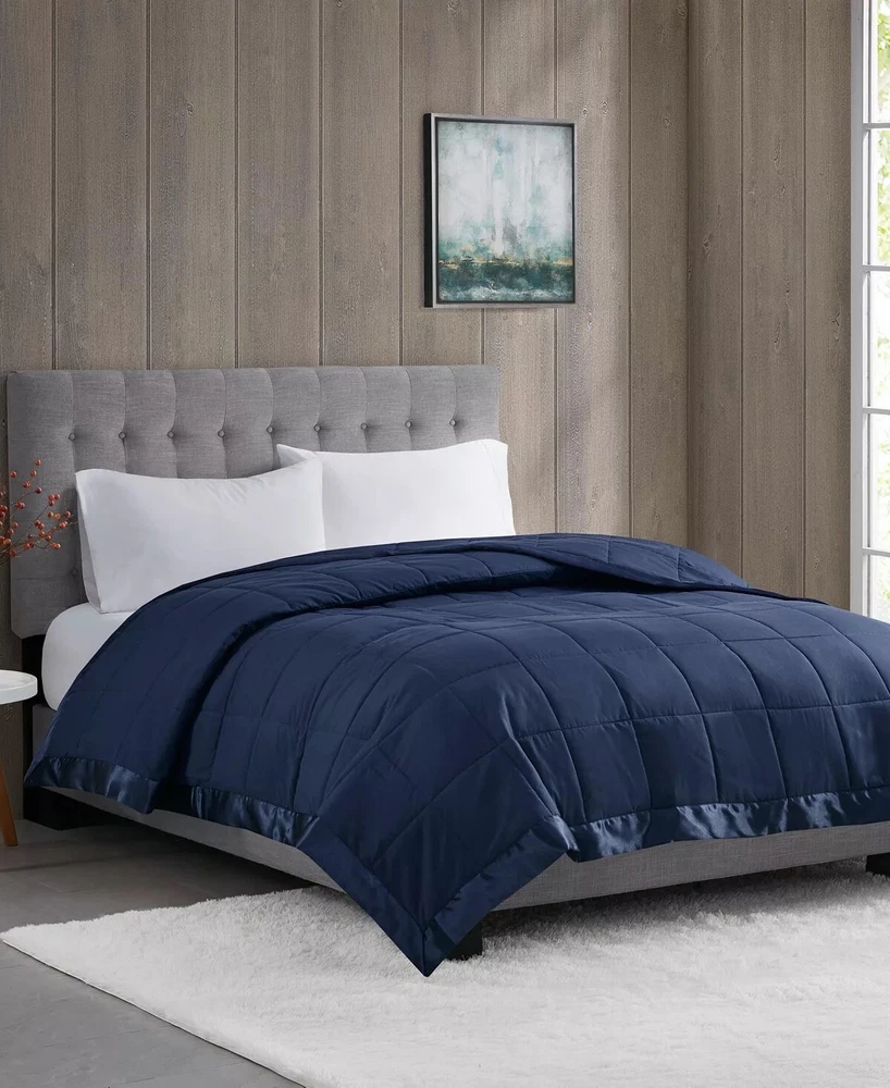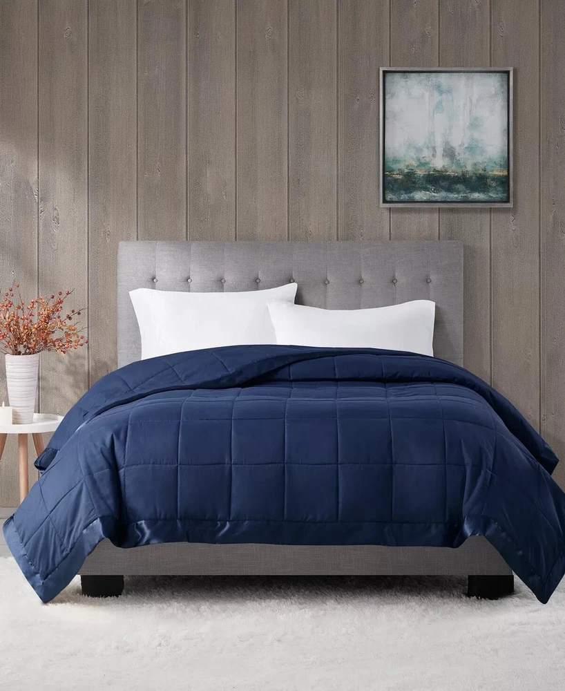 Elevate Your Sleep Experience with the Madison Park Windom All Season Hypoallergenic Microfiber Down Alternative Blanket: The Ultimate Year-Round Comfort Companion! The 3M Scotchgard Moisture Management Treatment keeps you warm and dry while tackling stains, while the down alternative filling adds an extra layer of softness and warmth. Expertly crafted with sewn-through box-quilting to prevent shifting, the blanket boasts a satin binding for an elegant touch, making it a stunning addition to your bed. OEKO-TEX certified for your peace of mind, this hypoallergenic marvel ensures a cozy, quality comfort night after night
