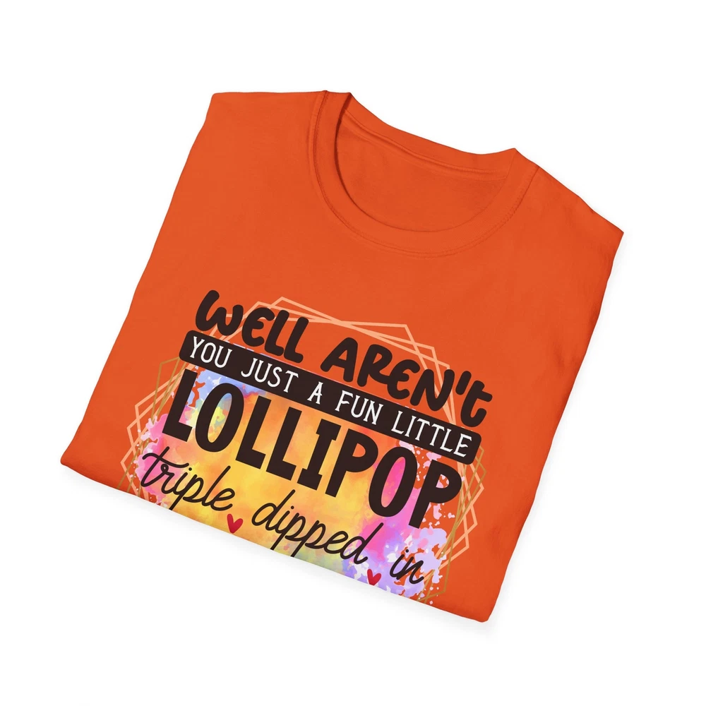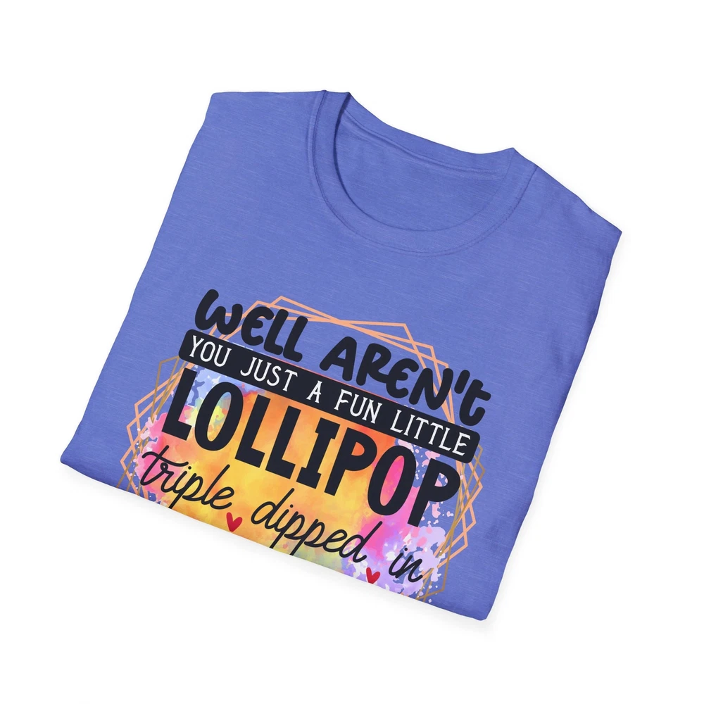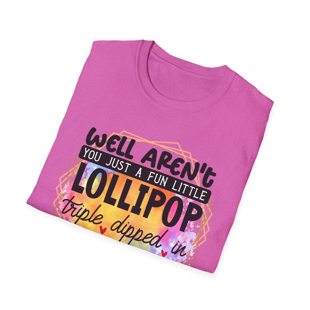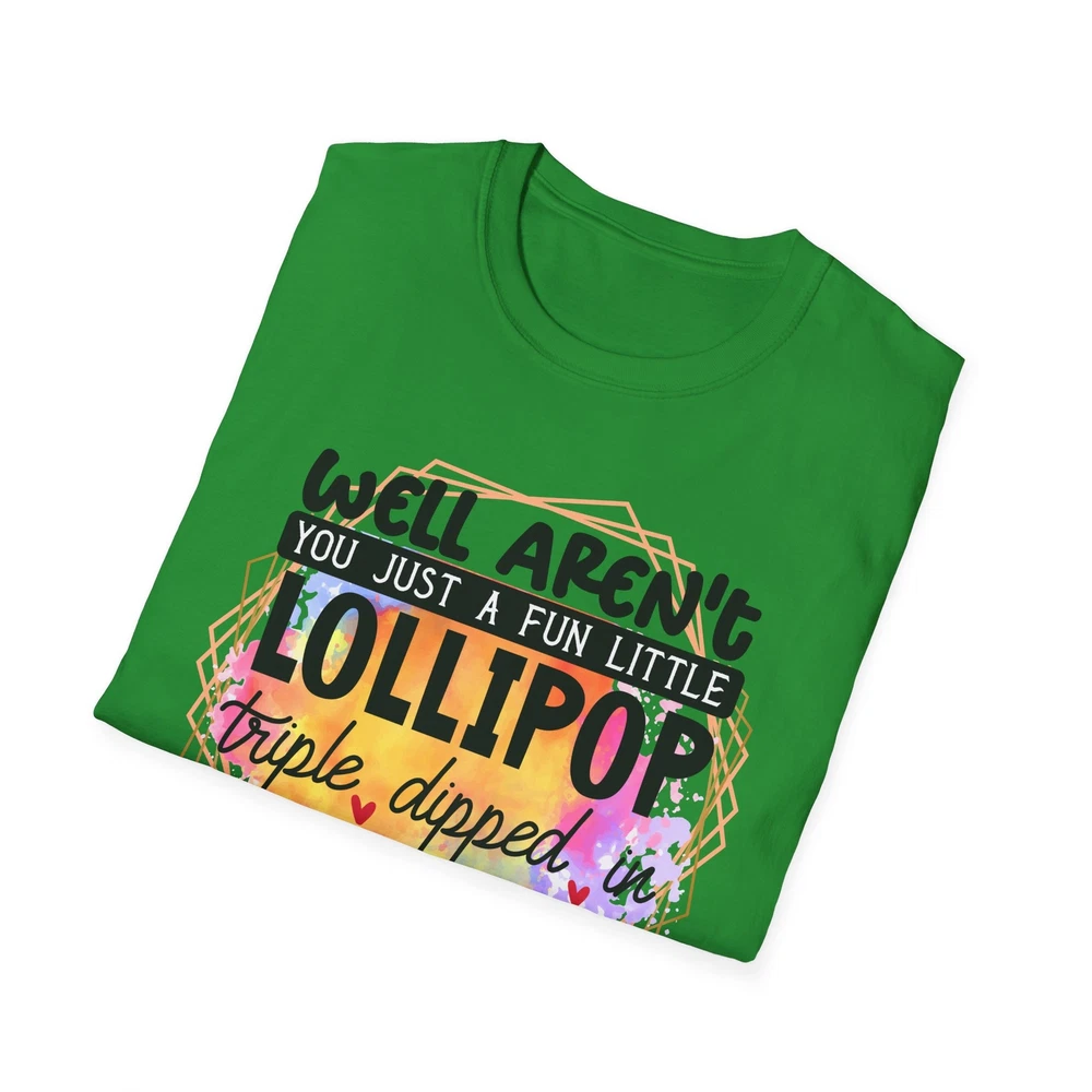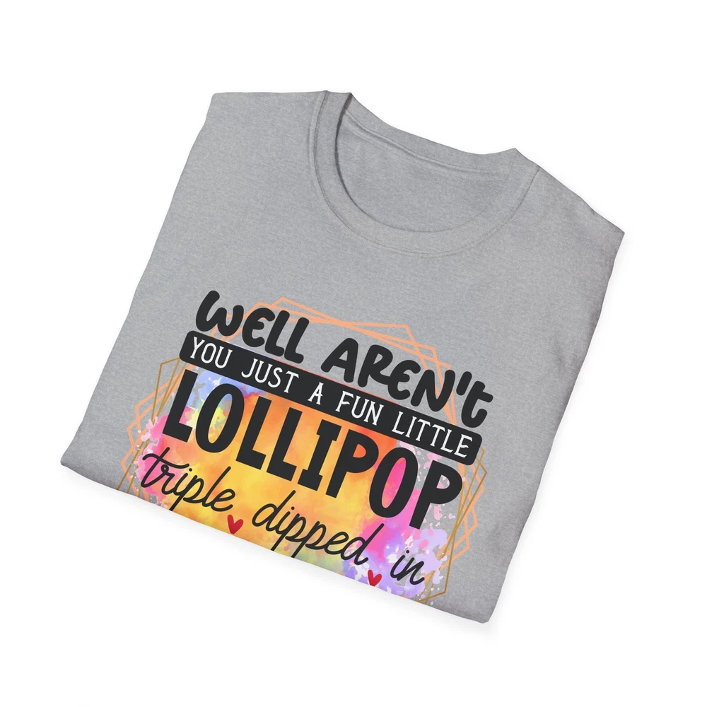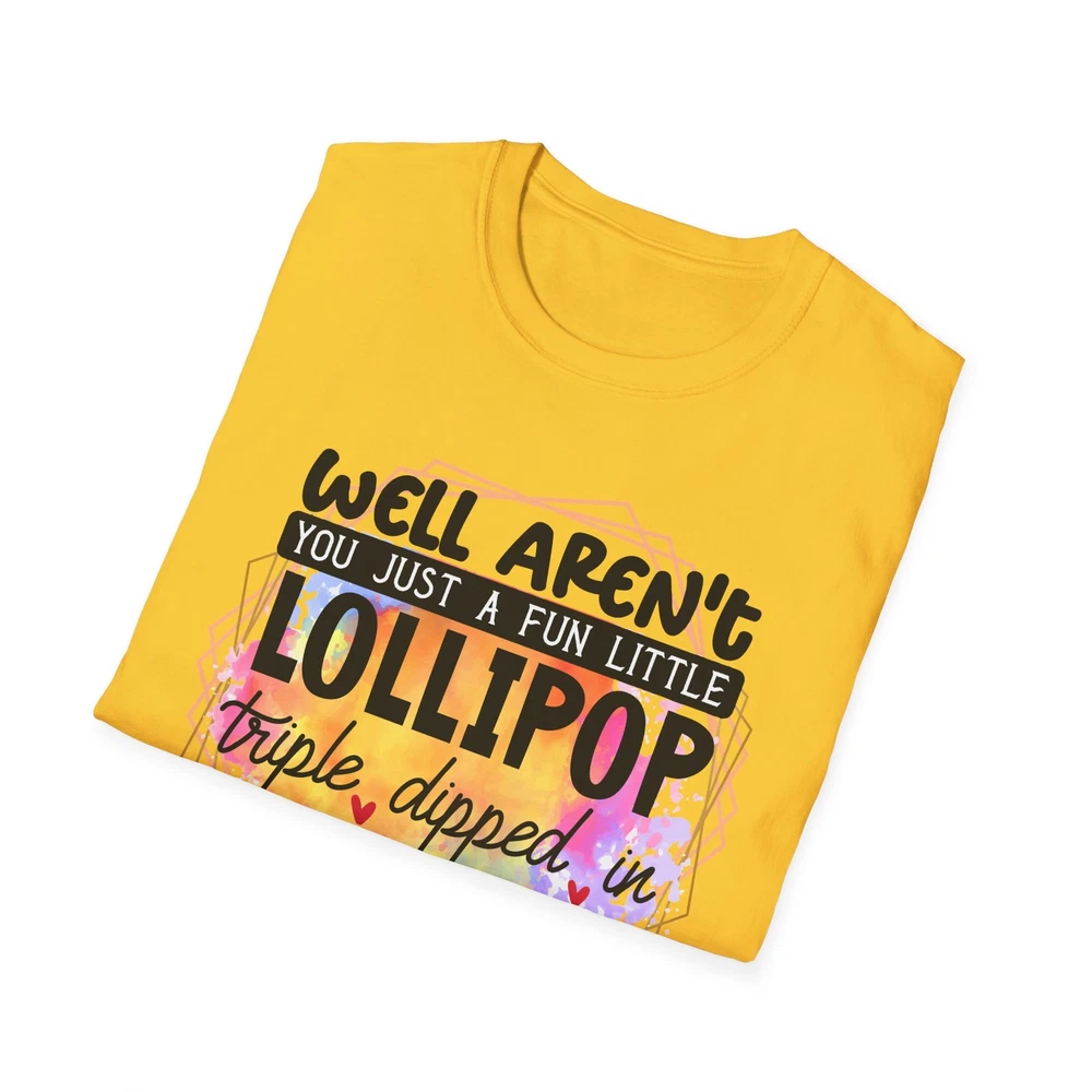 This 'well aren't you a fun little lollipop dipped in psycho' T-shirt is the perfect addition to any sarcasm lover's wardrobe. It exudes a cozy and laid-back vibe, making it ideal for casual outings, lounging at home, or grabbing coffee with friends. This T-shirt is relevant to coffee enthusiasts and those who prioritize comfort and style in their everyday wear. It's perfect for celebrating National Coffee Day or as a thoughtful gift for a coffee lover in your life. Product features - Made from durable and smooth 100% ring-spun cotton fabric - Classic fit with a crew neckline for versatile styling - Ethically grown and harvested US cotton for sustainable production - Variety of fabric blends available for different color options - Features a tear-away label for total wearing comfort Care instructions - Do not dryclean - Do not bleach - Tumble dry: low heat - Iron, steam or dry: low heat - Machine wash: cold (max 30C or 90F), with similar colors