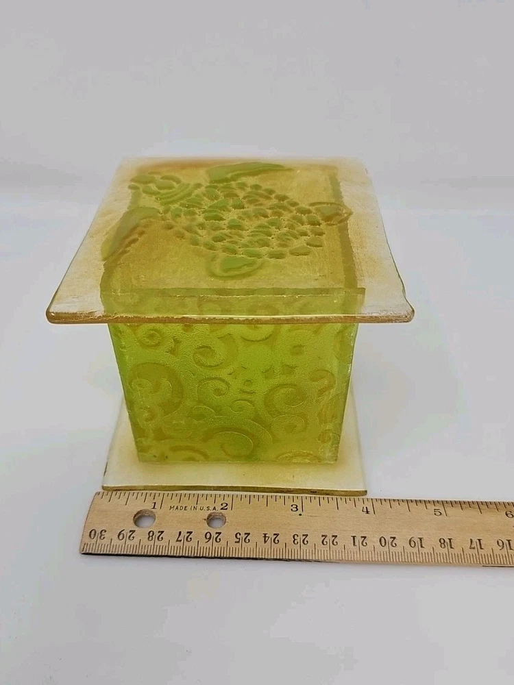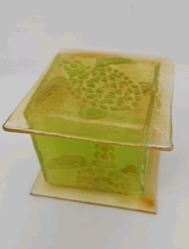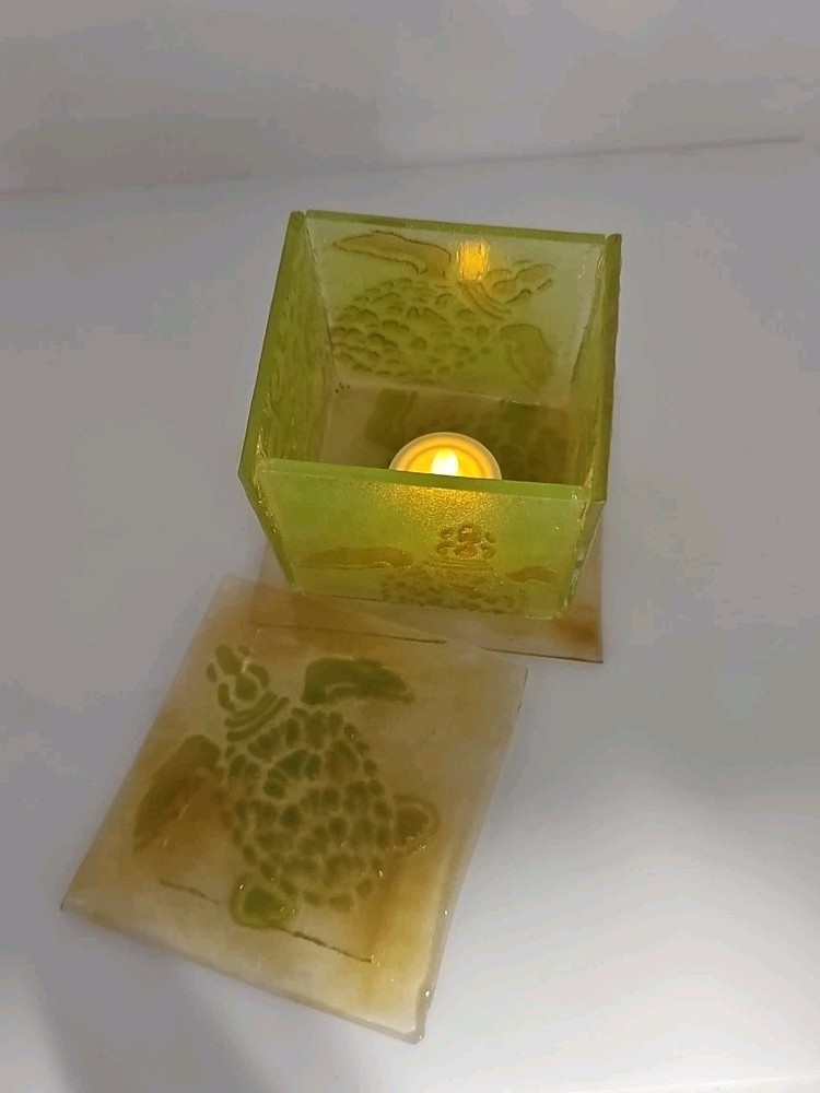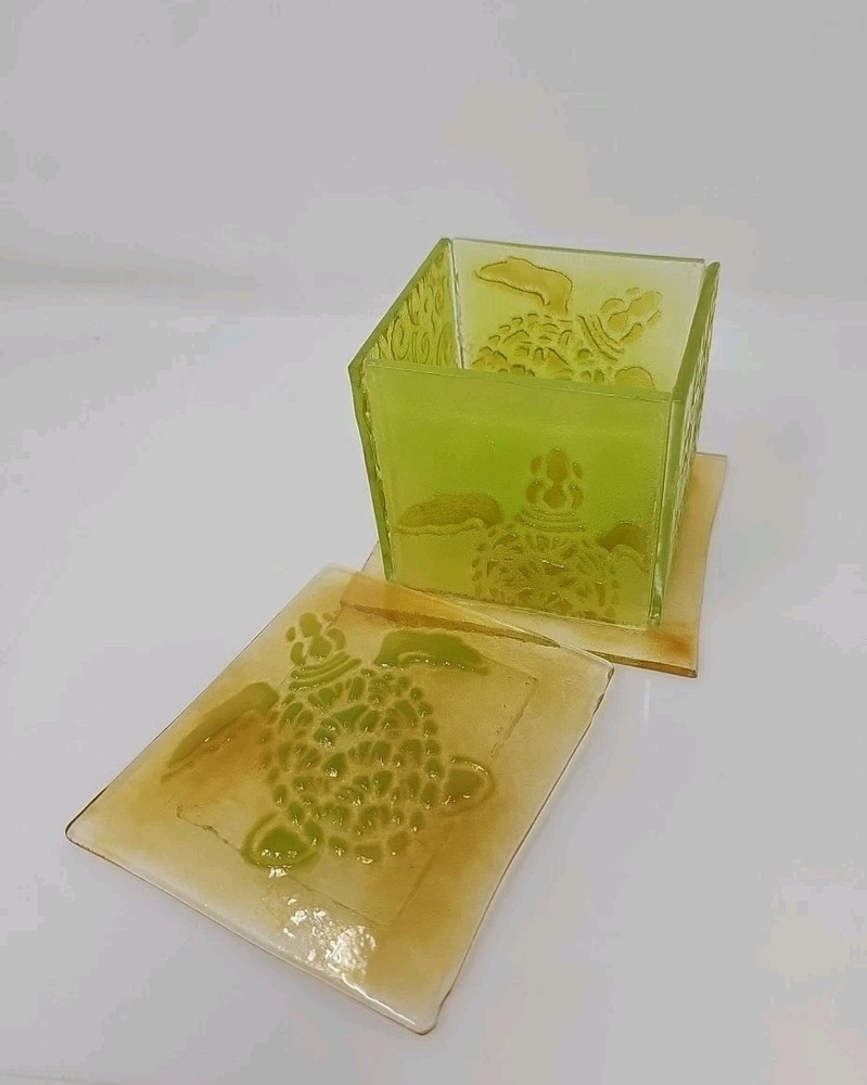 This handmade trinket box is perfect for storing your small treasures, trinkets, and even candles. The box features a beautiful sea turtle design and is made of fused glass, giving it a unique and artistic touch. Its square shape and 4-inch size make it suitable for any room and occasion. The trinket box is an original piece from the Artist at Work collection and is perfect for boys, girls, teens, and adults. Care instructions include cleaning with a damp cloth or warm water. This bohemian-style box is perfect for those who love turtles, animals, and dinosaurs. It is a great gift for your loved ones or a perfect addition to your collection. Artist Jennifer Stockman a.k.a Jenel Art