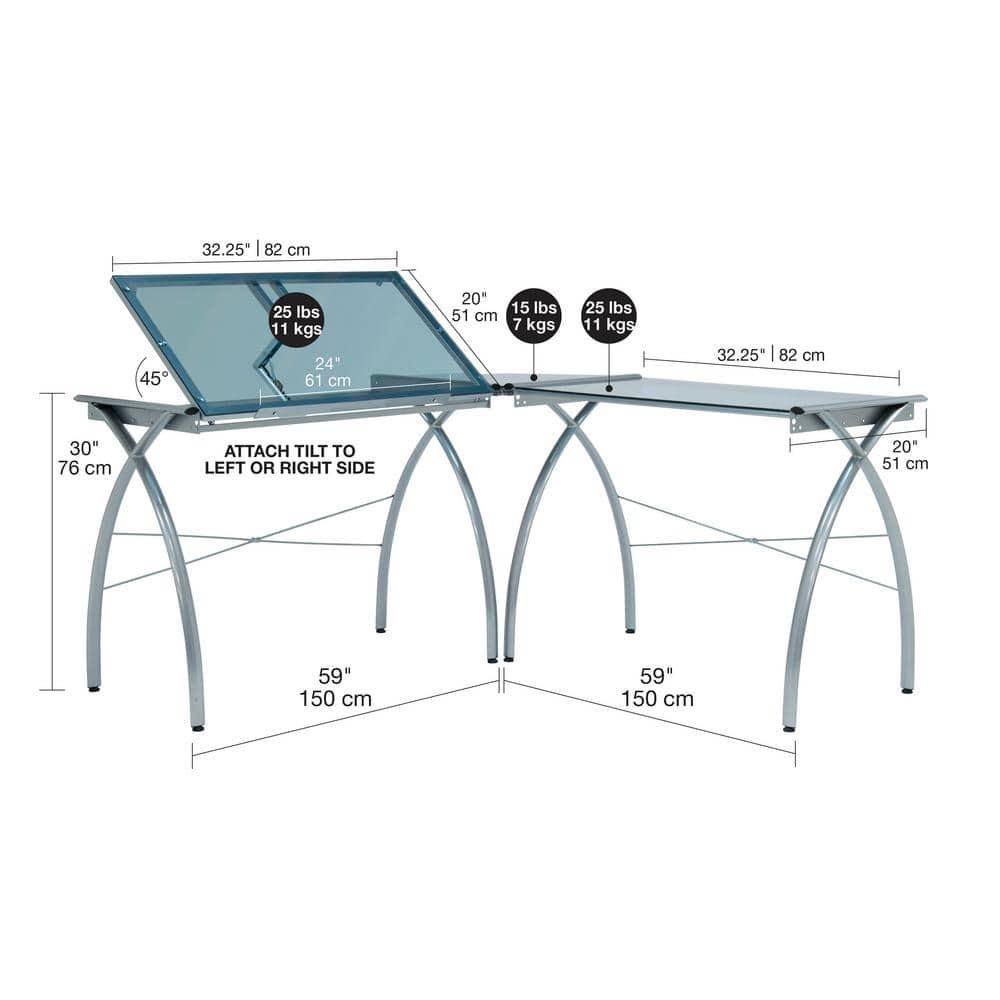 Contact Us Add to Favorite Fast Shipping Hassle Free Return eBay Money Back Guarantee Authenticity Guarantee Features Ideal for use as a drafting table and light table Measures 59 in. W x 59 in. D x 30 in. H Made of powder-coated steel and tempered glass for durability Item Description Studio Designs' Futura LS Workcenter with Tilt Top a three-in-one desk space that complements any work setting. The sleek design of the two table and corner connector create a seamless desk top without taking up too much space. One of the tempered safety glass table tops can adjust in angle up to 45 degrees. Arrange the placement of tables to your liking during assembly. The workcenter can be used as a drafting or light table. Also featured is a 24 in. pencil ledge that slides up and locks into place when needed as well as rear crossbars and floor levelers for stability. Made of durable powder-coated steel. Main work surface: 35.25 in. L x 20 in. D per table and 20 in. x 20 in. corner connector. Assembled dimensions: 59 in. W x 59 in. D x 30 in. H Color/Finish: Silver / Blue Glass Pack Size: 1 Returnable: 30-Day Product Depth (in.): 0 in Product Height (in.): 0 in Product Width (in.): 0 in About us Customer service is our top priority! Please be sure to read the description thoroughly to make sure that this is the item you want before making a purchasing decision. If you have any questions about this item, please contact us via eBay messages before placing your order. We make every effort possible to accurately describe and depict the items. Please be aware that slight variations in color may be due to differences in lighting and computer monitor resolutions. All items are in stock at the time of listing; however, in the unlikely and unforeseen event that we are unable to fulfill your order through any of our networked warehouses, we will notify you as quickly as possible and offer you a 100% refund on your purchase. Thank you for shopping with us. We appreciate your business! Payment PayPal is our preferred method of payment. If you do not have a PayPal account, all major credit cards are gladly accepted through PayPal as the payment processor. PayPal offers great buyer and seller protection. Your order will be processed pending receipt of cleared payment through PayPal. Sales tax may be charged depending on your location. Shipping We provide fast, free shipping. Most items are shipped within 3-5 business days of receiving cleared payment. We ship to the lower 48 contiguous United States only. We do not ship to P.O. Boxes or APOs. For select items, we ship internationally through eBay?s Global Shipping Program. We do ship most of our smaller items internationally using eBays Global Shipping Program. If ordering electrical items outside of the U.S., please note that they will come equipped with a standard U.S. voltage plugs. You will need a suitable adapter to use the item in your country. Certain restrictions apply. Standard or Economy Shipping is ALWAYS FREE! You will be notified via eBay messages as soon as your items ship. Special Notice for Freight Items: If an item ships via Freight (Truck) Delivery, a valid phone number will be required so that we can contact you to schedule delivery. The item may be delivered with curbside delivery. An adult signature will be required. Please be sure to have available help on hand to assist you with moving the item to the desired location in or outside of your home. Freight items must be inspected upon delivery. In the unlikely event that damaged is observed, you MUST refuse delivery and note the damage on the shipping receipt and send it back via the Freight carrier. Returns will not be accepted on Freight items after they have been delivered, inspected, and the driver has left the premises. Returns We offer a 30 day return/exchange policy for most of our products. You can request a refund if you are dissatisfied for any reason with your product. (Restocking Fee May Apply). Only factory defects are accepted as a reason for a return. In the case of factory defects, if available, we will replace the product for you. When returning an item, it must be in all of the original packaging and include all of the original accessories or items that came with it. The item and package should be in original and perfect condition. You will be required to cover shipping on the return of non-defective items. All returns MUST be done within 30 days of date of purchase. Please note that we cannot give refunds or replacements after the 30 day limit has expired. When sending in a return, please note that it can take up to 7 business days for the return to be processed. We do our best to process as quickly as possible. We are extremely fair, and in the rare event of something out of the ordinary happening with our products or shipping, we will gladly work with you to find a fair resolution. Disclaimer Were sorry, but we do not honor product exchange requests. If you need to exchange an item received, you will need to go through the normal returns process identified in our returns section and then order the correct item, if it is still available. Orders are processed immediately and dispatched to fulfillment as soon as they are received. For this reason, we are typically unable to honor cancellation requests. If you need to cancel the transaction, please contact us as soon as possible and we will attempt to cancel the order. If the order has gone too far through the fulfillment process, we will be unable to cancel. In that event, you would need to wait until you receive the item and go through the normal returns process as mentioned in the returns section of our policies. Payment Options Shop With Confidence Copyright ©2023, All rights reserved. Listed by Sku Fetch