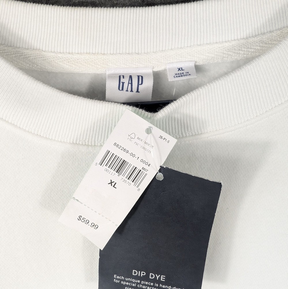 GAP Pullover Sweatshirt Blue White Dip Dye Size XLarge Soft Lining. Chest measures 25" pit to pit. Length measures 26". Please view all images. Message with any questions.
