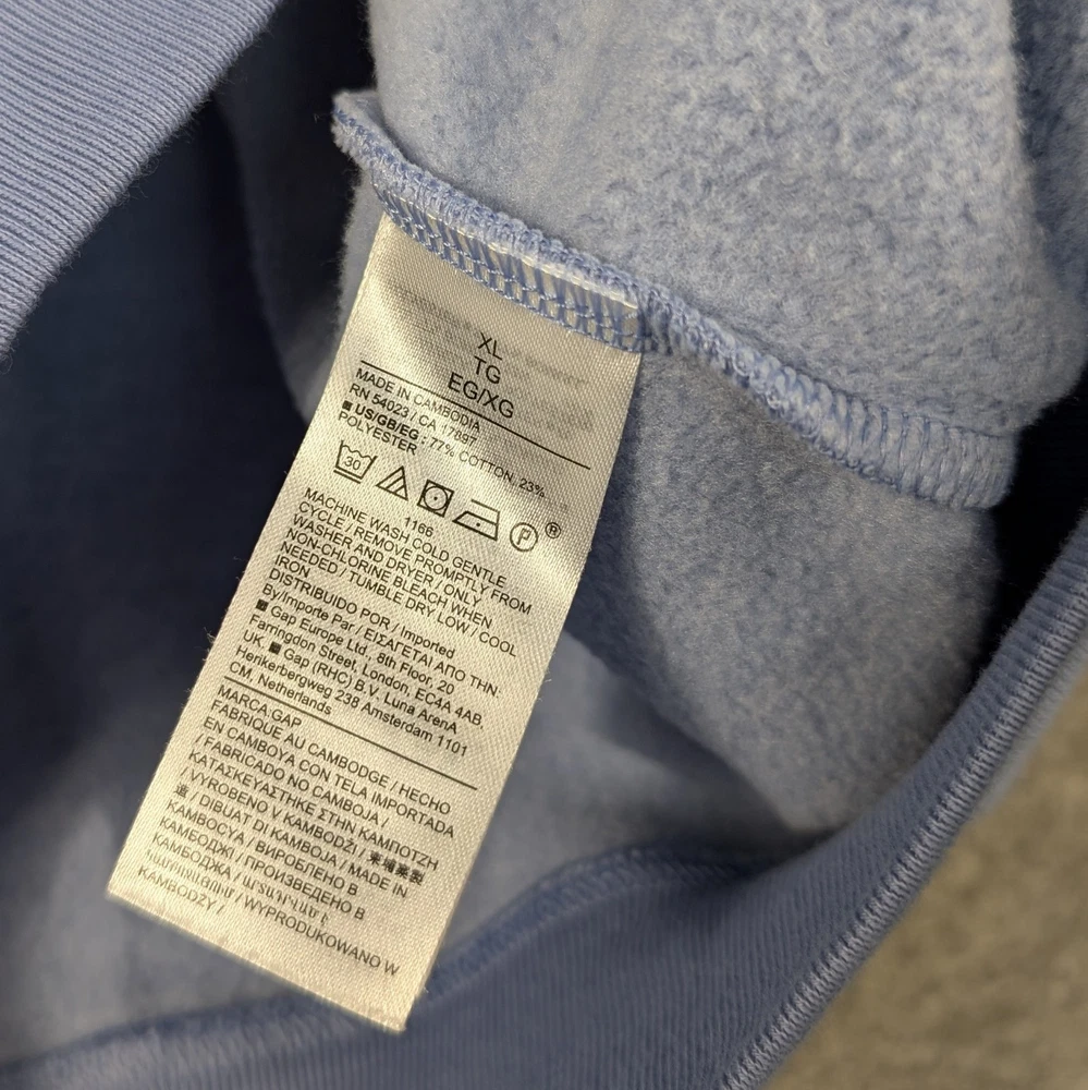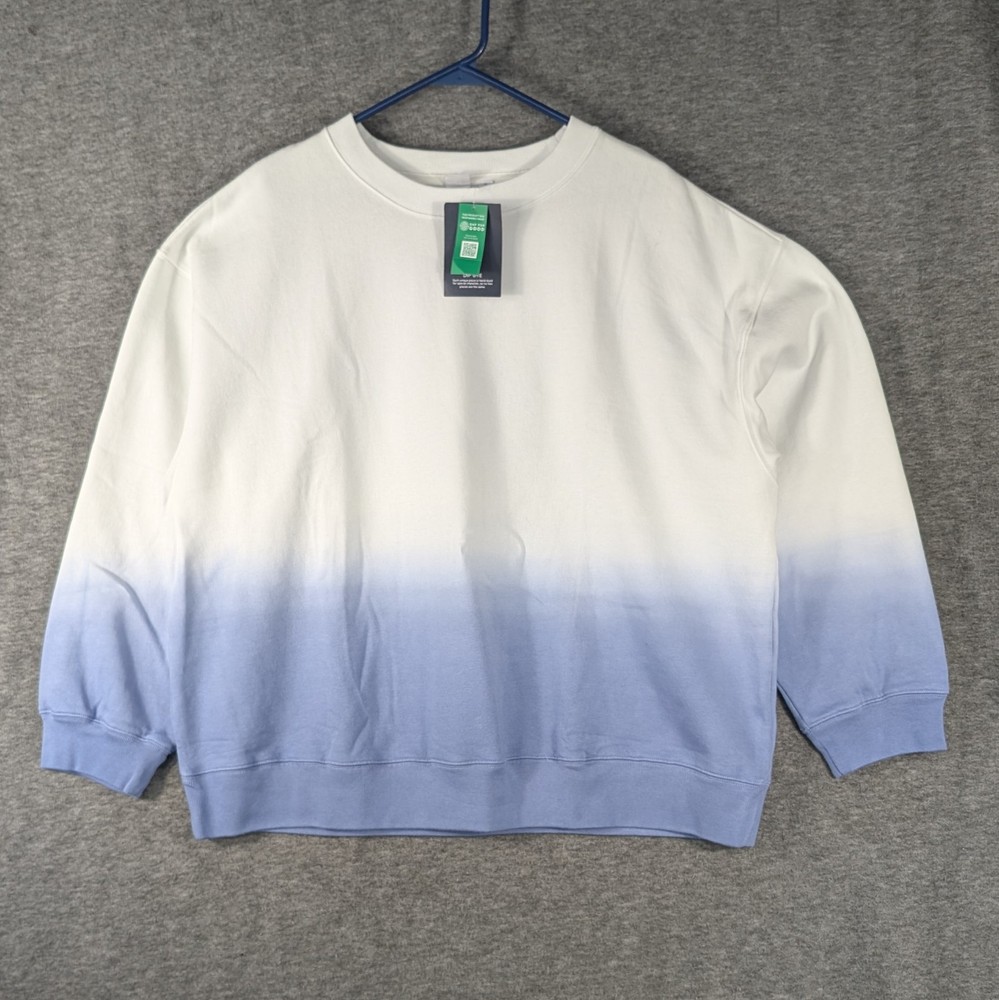 GAP Pullover Sweatshirt Blue White Dip Dye Size XLarge Soft Lining. Chest measures 25" pit to pit. Length measures 26". Please view all images. Message with any questions....